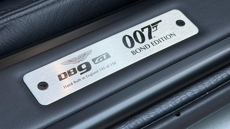 Rare Bond Edition DB9 GT with just 2500 miles on the clock. A true collectors item and 1 of just 141 ever built. Rarest of the rare Aston Martin DB9 GT Bond Edition with just 2500miles covered and meticulously cared for and maintained. A true collectors item being 1 of 141 cars ever built and comes with the original 21 Globe-Trotter trolley case with an embossed leather luggage tag and Omega Seamaster Aqua Terra 150m James Bond Limited Edition watch complete with a unique Aston Martin strap. Also fitted with a remarkable specification including Bang and Olufsen Beosound Audio System, Gloss Carbon Fibre Exterior Pack, Carbon Fibre Gear Paddles, Matte Black Exhaust Tailpipe Finisher and much more as standard.