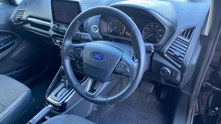 Enjoy our Ford Ecosport 1.0 EcoBoost 125 Titanium with Cruise control and Sat Nav. This cars features include Body coloured bumpers, Climate control, Roof rails, Front electric windows, Front fog lights, Height adjustable drivers seat, Rear electric windows, Steering wheel rake adjustment, Steering wheel reach adjustment.