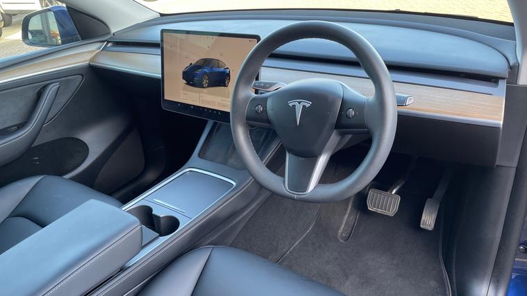 A stunning Tesla Model Y Long Range finished in metallic blue. Experience the future of driving with the Tesla Model Y Long Range AWD. Effortlessly explore new horizons with its impressive all-wheel drive capability. Bask in the open skies through the fixed panoramic sunroof, while electric heated seats ensure optimal comfort. Navigate any journey with intuitive technology at your fingertips, featuring a state-of-the-art reverse camera and seamless navigation system. The power tailgate simplifies loading, merging luxury with practicality. With adaptive cruise control, redefine what's possible on the road. Embrace innovation, efficiency, and unparalleled performance with the Model Y. Drive the extraordinary and elevate your everyday driving experience.