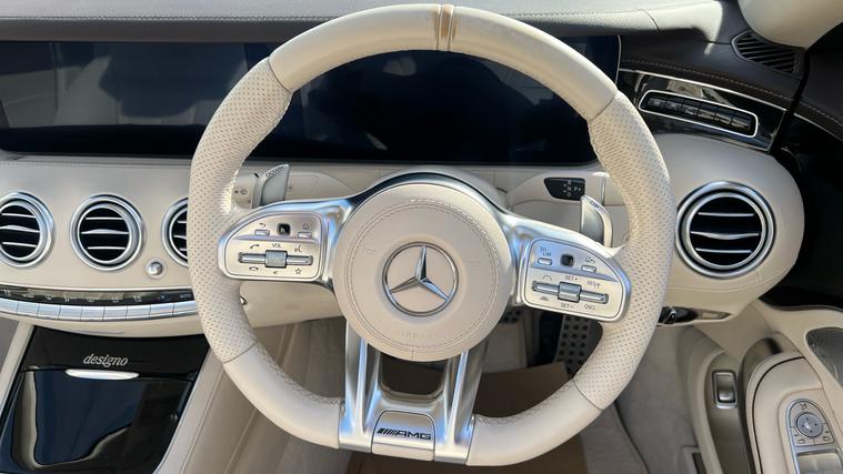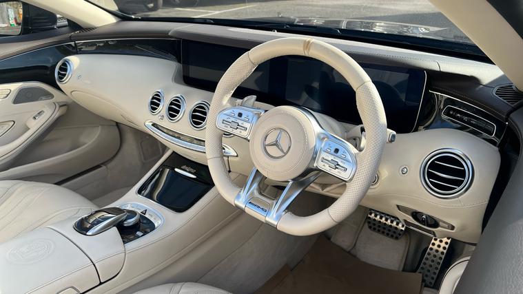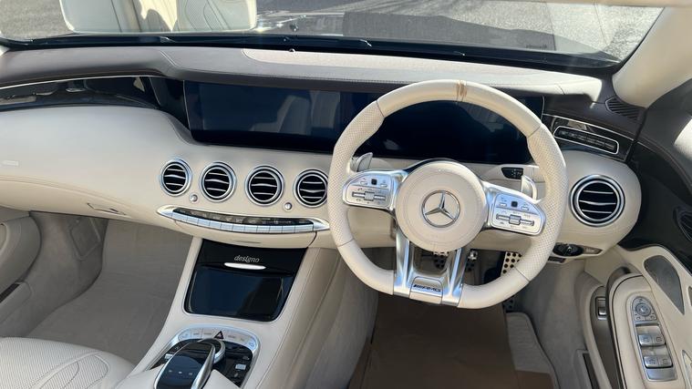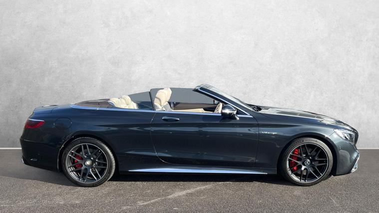 Mercedes Benz S63 AMG Cabriolet finished in metalic black with an ivory interior. Experience the epitome of elegance and performance with the Mercedes-Benz S-Class AMG S63 612 2dr MCT. This stunning black convertible is powered by a formidable V8 bi-turbo engine, blending exhilarating power with opulent comfort. Its sleek design and superior craftsmanship embody the luxury synonymous with Mercedes-Benz. Every journey is transformed into an unforgettable experience, enveloped in exclusive features and advanced technology. Purchase with complete peace of mind, backed by a comprehensive 12-month warranty. Discover a driving experience like no other; the S-Class S63 is where performance meets precision engineering. Indulge in a new standard of excellence.