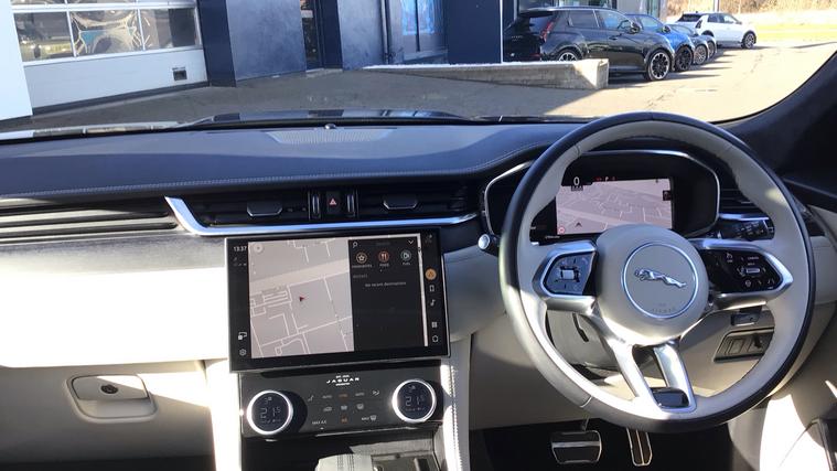 21 Alloys, Pan Roof, Heated Memory Seats, Sat Nav, 1 Owner from new. This stunning Limited Edition F Pace R-Dynamic HSE Black Edition comes packed with features such as 2 Zone Climate Control, Perforated Ivory Windsor Leather Sport Seats that are headed and have a memory function, Wide Screen Sattellite Navigation, 21 Alloys and a Panoramic Glass Roof.