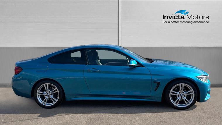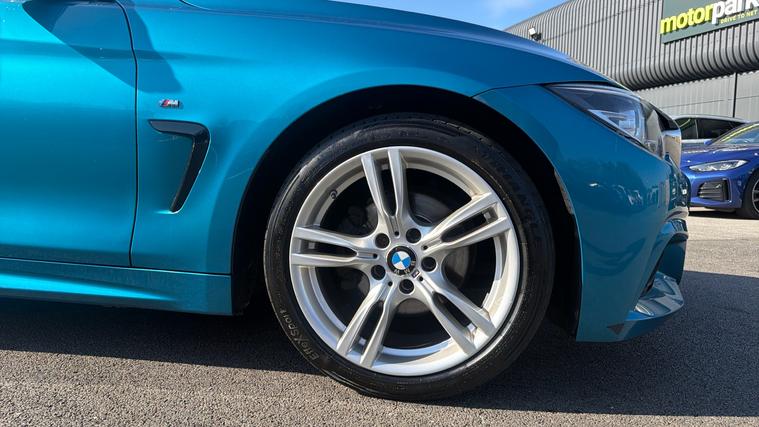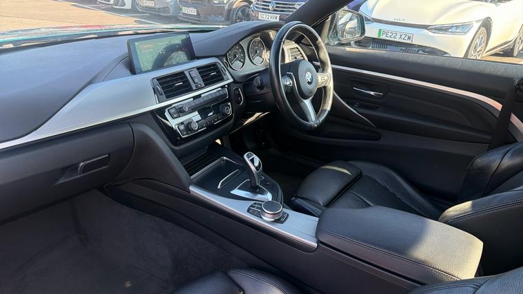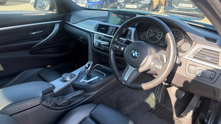 Call our friendly sales team to arrange viewing or request for personalised video. BMW's 4 Series has been created to offer an alternative to the C-Class Convertible and A5 Convertible. Known to offer excellent driving characteristics, BMW has created a fantastic drop top, with a punchy Engine and striking looks. The Snapper Rocks Blue metallic paint looks excellent on our 'M Sport' model with optional 18-inch Alloy Wheels. Throughout the cabin the 'Dakota Leather' upholstery offers a luxurious finish, presented in the Black and featuring Heated Front Seats for added comfort. Placed on the dashboard the 'BMW Professional Navigation' system offers access to DAB radio bands and media connections for Bluetooth/USB devices.