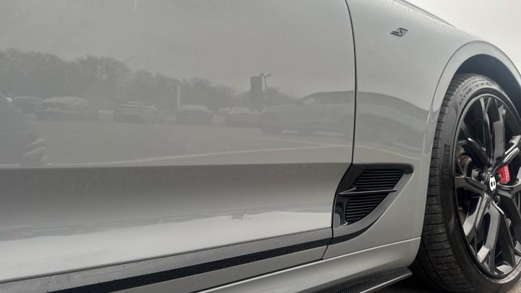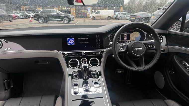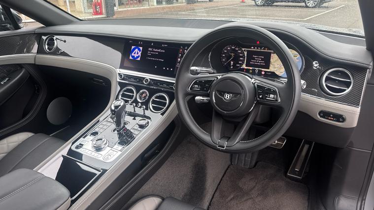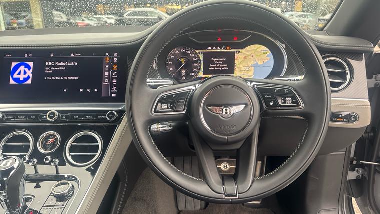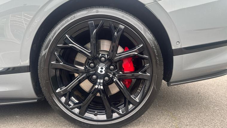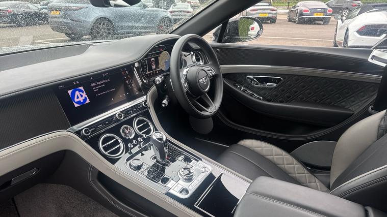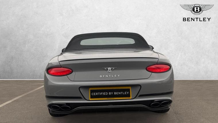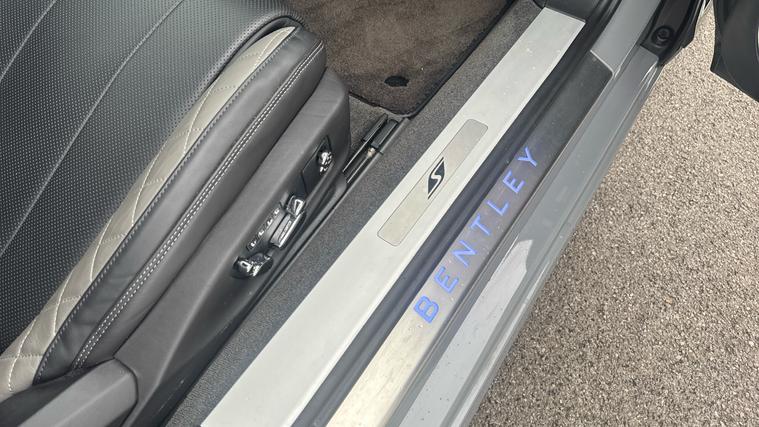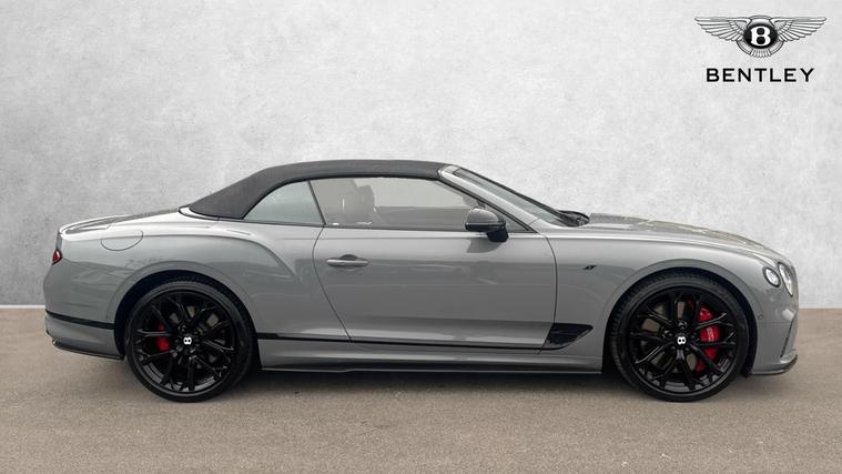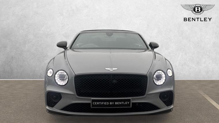 Bentley Continental GTC 4.0 V8 S specification finished in Cambrian Grey with a dark Grey metallic roof. Leather Specification with Diamond Quilting, LED Welcome Lamps, Touring Specification, Front Seat Comfort Specification, Sports Pedals, Deep Pile Overmats - Front, Contrast Stitching, Colour Specification, Mood Lighting Specification, Single Finish - High Gloss Carbon Fibre, 22 Ten Spoke Sports Wheel - Black Painted.