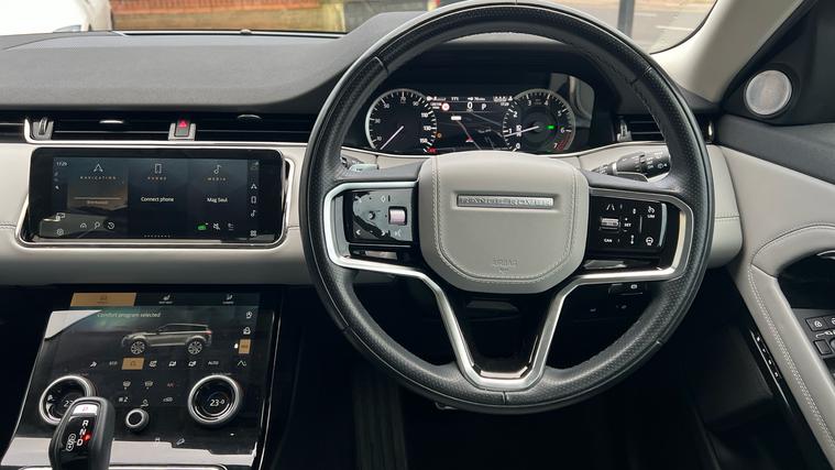 Well appointed R-Dynamic HSE Petrol Evoque with black pack exterior and Panoramic Sunroof. *9.9 Representative APR available. Finished in Firenze Red Meatllic with Cloud/Ebony Perforated Windsor leather seats. Features include Black Exterior Pack, Front fog lights, Reduced section spare wheel, 20 inch Style 5079 Diamond Turned Alloy Wheels, 2 Zone Airconditioning, Adaptive Cruise Control, Al Wheel Drive, Apple CarPlay with Android Audio, Blind Spot Assist, DAB Radio, Directional Indicators, Diamond Perforated Windsor Leather Seats, Fixed Panoramic Sunroof, Front and Rear Parking Aid with Rear Camera, Front Fog Lamps, Heated Front Windscreen, Heated Steering Wheel, Heated Front Seats, Premium LED Headlamps, 10 inch Infotainment Screen System, Keyless Entry, Meridian Surround Sound System, Satin Chrome Paddleshifters, Powered Tailgate, Reverese Traffic Detection and Autobrake, Voice Activated Controls, Rain Sensing Front Wipers. Call now for the full details and to check availability. *9.9 Representative APR available.