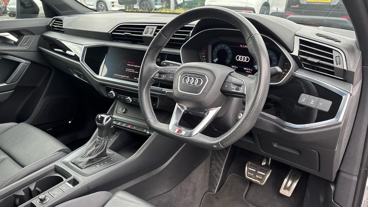 Our stunning Audi Q3 features desirable essentials such as Comfort and Sound Pack, Powered Tailgate, Folding Mirrors, and Audi Virtual Cockpit. Elevate your drive with the Audi Q3 35 TFSI Black Edition. Seamlessly integrated with Audi Connect Infotainment Plus and Amazon Alexa, this SUV redefines connectivity. Stay effortlessly linked with Wireless Apple CarPlay and the Bluetooth Interface, enhanced by the immersive DAB Digital Radio and MMI Navigation on a sleek 10.1-inch touchscreen. Safety meets sophistication with the Cruise Control System, Distraction and Fatigue Warning, Rear Parking Sensors, and Lane Departure Warning. Experience the ambient lighting and Audi Virtual Cockpit's 10.25-inch display, while the Power Operated Tailgate adds convenience. Drive the Q3, where elegance meets technology in perfect harmony.