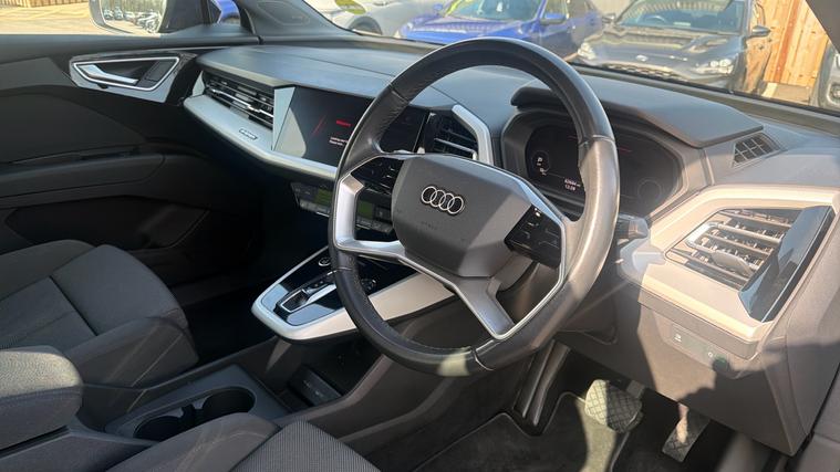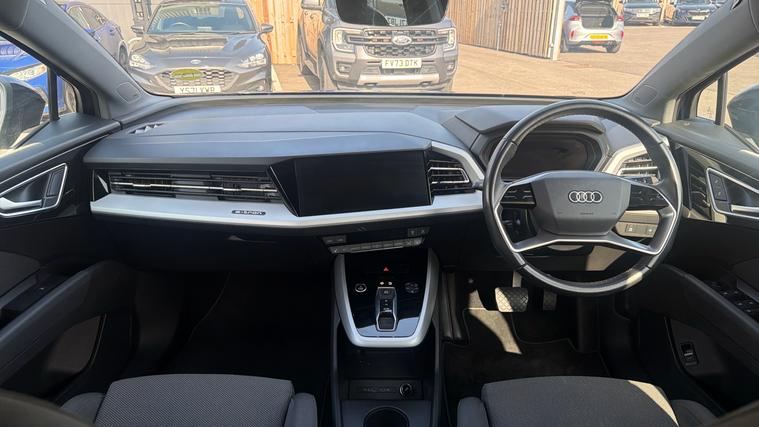 Features Include C + S Pack, Virtual Cockpit, LED Headlights, Dual Zone Climate Control, Front And Rear Parking Sensors With Reversing Camera And Satellite Navigation. Presented in excellent condition, this 2023 Audi Q4 e-tron 40 represents the perfect blend of premium design, cutting-edge electric technology and everyday practicality. As part of Audi's fully electric SUV range, the Q4 e-tron delivers smooth performance, impressive driving range and a refined, high-quality interior, making it an ideal choice for drivers looking to transition to electric mobility without compromising on luxury or versatility. Powered by a 150kW (204PS) electric motor driving the rear wheels, this model produces 310Nm of instant torque, delivering responsive acceleration and a quiet, refined driving experience. The 82kWh lithium-ion battery (76.6kWh usable) provides a WLTP driving range of up to approximately 320 miles, making it perfectly suited for both daily commuting and longer journeys. Power is delivered through a single-speed automatic transmission, allowing smooth, effortless acceleration with 0-62mph in around 8.5 seconds and an electronically limited top speed of 99mph. Charging is both convenient and fast, with AC charging up to 11kW for home wallboxes and DC rapid charging up to 135kW, enabling a 580 charge in around 30 minutes at compatible public rapid chargers.