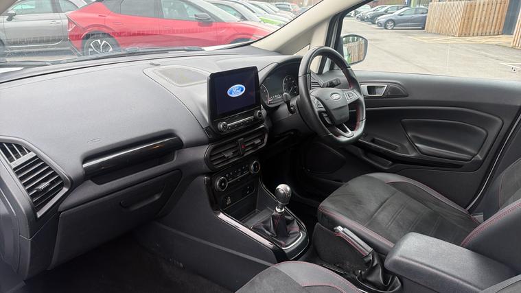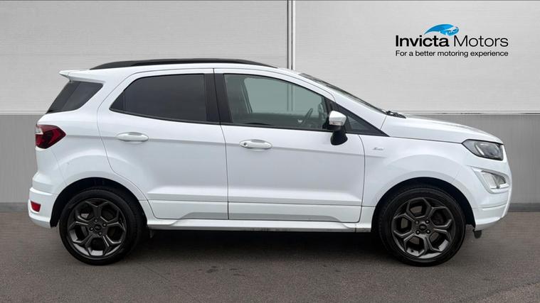 We pride ourselves in only providing vehicles of the highest of standards - all vehicles are taken through a pre-delivery inspection and are fully HPI checked for your peace of mind. This 2023 Ford EcoSport 1.0 EcoBoost 140 ST-Line 5door combines bold SUV styling with responsive performance and everyday practicality. Powered by a 1.0-litre EcoBoost turbocharged petrol engine producing 140PS, it delivers lively performance, confident acceleration, and excellent fuel economy ideal for both city driving and longer journeys. The sporty STLine trim adds dynamic exterior design cues and a wellequipped interior, making this EcoSport a stylish, funtodrive, and versatile compact SUV choice for families, commuters, and active lifestyles alike.
