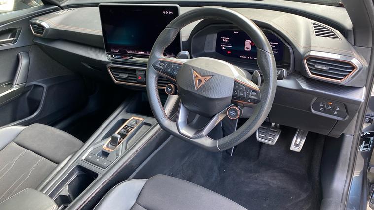 The 2024 Formentor 1.5 eTSI V1 turns up the premiumhigh spec, smart tech, and standout styling make it feel far above its price band. The 2024 CUPRA Formentor 1.5 eTSI 150 V1 combines stylish design with a rich set of interior and convenience features. It comes with 18 Sonora machined alloy wheels, full LED lighting (including rear infinite light strip with CUPRA logo), and gloss-black roof rails and window surrounds. Inside, you get a large 12.9-inch touchscreen navigation system (with wireless Apple CarPlay and wired Android Auto), a 10.25-inch digital cockpit, three-zone Climatronic climate control, ambient interior lighting, heated supersport leather steering wheel with satellite buttons and shift paddles, and sport seats with contrast (copper) stitching. Safety and driver-assistance tech are well covered with adaptive cruise control, front and rear parking sensors, lane assist, front assist, dynamic road sign display, and drive profile selection. The trim also includes cloth/sport upholstery, copper detailing, LED headlights with dynamic indicator, heated + folding mirrors, and welcome lightsall wrapped up in a compact SUV that balances style, tech, and daily usefulness.