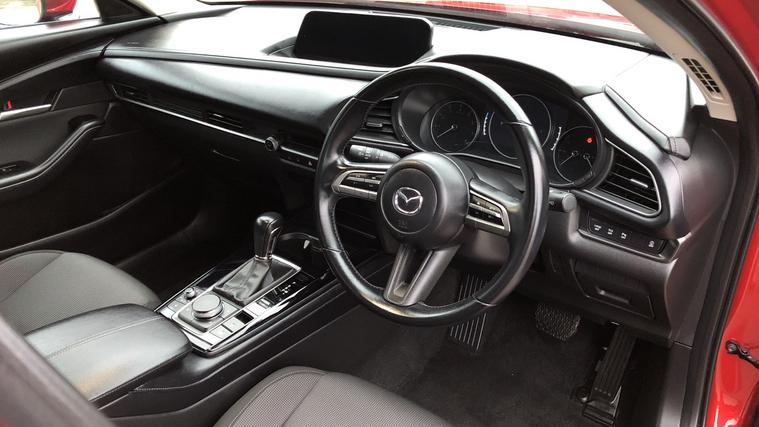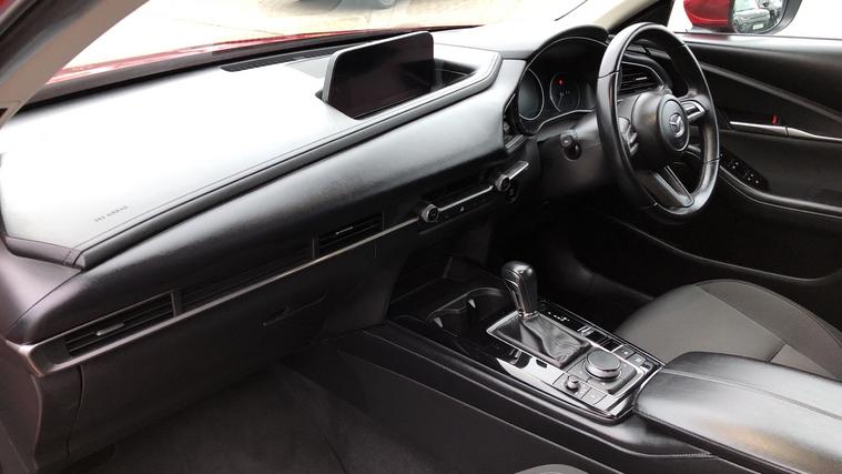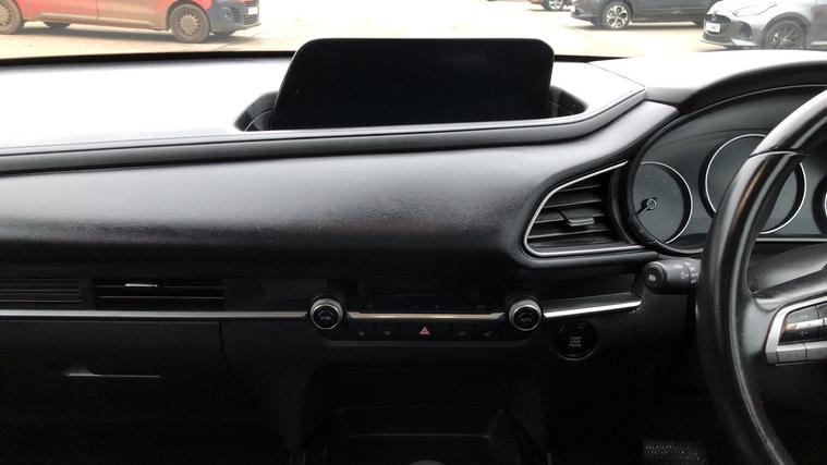 Specification of our Mazda CX-30 includes Mazda Navigation, Heated Front Seats, DAB Radio, Cruise Control with Speed Limiter and even Reverse Camera. Experience the thrill of seamless innovation with the Mazda CX-30 2.0 e-Skyactiv G MHEV SE-L Lux 5dr Auto. Navigate your world effortlessly with the 8.8in TFT Colour Centre Display and integrated Apple CarPlay and Android Auto. Stay connected through integrated Bluetooth and guided by the Mazda Navigation System. Safety meets sophistication with Blind Spot Monitoring, Rear Cross Traffic Alert, and Mazda Radar Cruise Control. Enjoy precise control with the Multimedia Commander. Effortless parking becomes reality with front and rear sensors, and a reversing camera. Comfort awaits with three-stage heated front seats. Elevate your drive with Mazda.