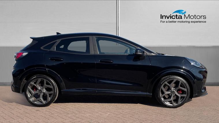 A stunning Puma ST finished in the metallic Agate Black. Never lose your way again with the inbuilt Sat Nav, plus this Puma ST is fitted with Heated Seats, Heated Steering Wheel, Keyless Entry, Automatic Headlights, Rain Sensing Wipers, Cruise Control, Lane Keeping Aid, Front and Rear Parking Sensors with Rear Camera, a Heated Windscreen, Electronic Climate Control, Wireless Charging Pad and a DAB Radio with USB in. Qualifies for Warranty4Life*.