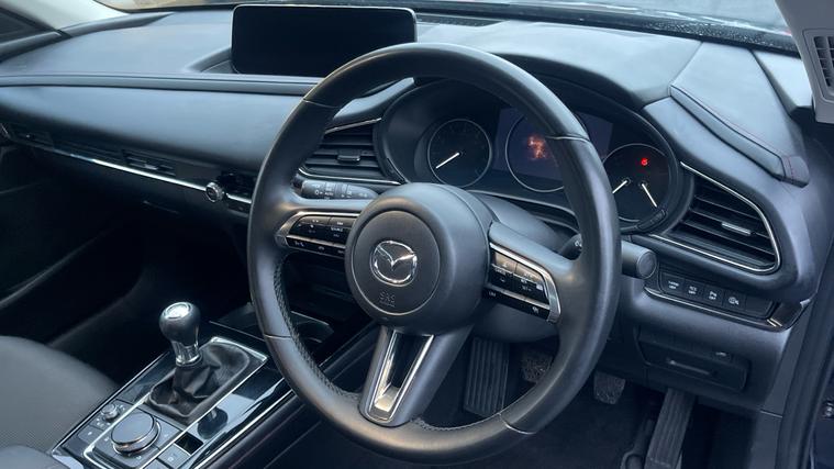Specification of this our Mazda CX-30 includes Heated Front Seats, Wireless Charging, Folding Mirrors, Mazda Navigation, Reverse Camera and even Apple CarPlay/Android Auto. Experience driving like never before with the Mazda CX-30 2.5 e-Skyactiv G MHEV Homura. Seamlessly connect with the 10.25in Colour Centre Display featuring DAB Radio, 8 speakers, and Integrated Bluetooth. Enhance every journey with the Mazda Hybrid Navigation System and Alexa In-Car Voice Assistant. Stay charged with QI Wireless Charging, while Wireless Apple CarPlay and Wired Android Auto keep you connected. Safety is paramount with Blind Spot Monitoring, Rear Cross Traffic Alert, and a Reversing Camera. Enjoy adaptive cruise control and Traffic Sign Recognition for effortless cruising. Comfort meets innovation with 3-stage Heated Front Seats. Welcome to the future of driving.