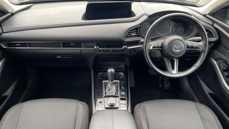 Specification of this our Mazda CX-30 includes Heated Front Seats, Wireless Charging, Folding Mirrors, Mazda Navigation, Reverse Camera and even Apple CarPlay/Android Auto. Experience driving like never before with the Mazda CX-30 2.5 e-Skyactiv G MHEV Homura. Seamlessly connect with the 10.25in Colour Centre Display featuring DAB Radio, 8 speakers, and Integrated Bluetooth. Enhance every journey with the Mazda Hybrid Navigation System and Alexa In-Car Voice Assistant. Stay charged with QI Wireless Charging, while Wireless Apple CarPlay and Wired Android Auto keep you connected. Safety is paramount with Blind Spot Monitoring, Rear Cross Traffic Alert, and a Reversing Camera. Enjoy adaptive cruise control and Traffic Sign Recognition for effortless cruising. Comfort meets innovation with 3-stage Heated Front Seats. Welcome to the future of driving.