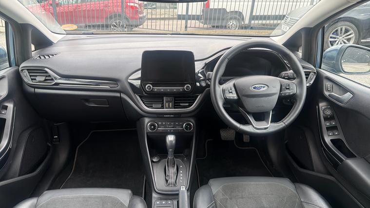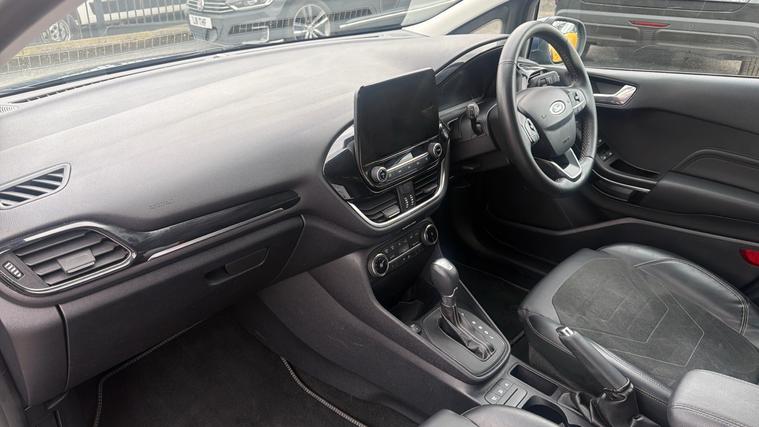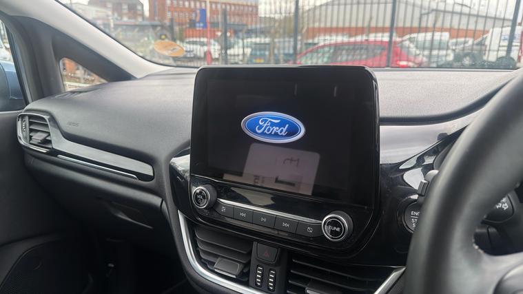 Features Include Quickclear Heated Windscreen, Apple CarPlay And Android Auto, Dual Zone Climate And Rear Parking Sensors And Reversing Camera. Presented in excellent condition, this 2023 Ford Fiesta Titanium X Hybrid is a beautifully specified example of one of the UK's most popular and refined small cars. Finished in the striking Chrome Blue metallic, this model combines elegant styling, advanced hybrid technology and a high level of comfort, making it an ideal choice for drivers seeking a premium hatchback with exceptional everyday usability. At the heart of the Fiesta is Ford's award-winning EcoBoost mild-hybrid powertrain, which blends turbocharged petrol performance with intelligent 48-volt hybrid assistance. This technology helps improve fuel efficiency while delivering smooth, responsive acceleration and a quiet, refined driving experience. The system also recovers energy during braking and uses it to support the engine when accelerating, enhancing both efficiency and performance.