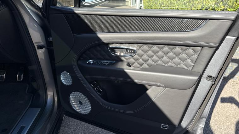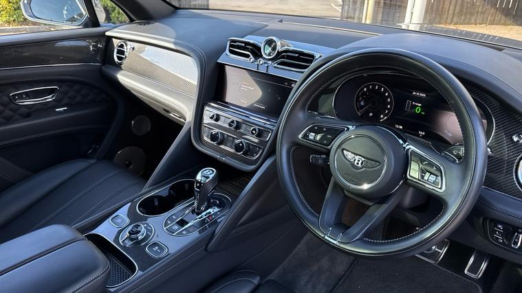 Bentayga 3.0 V6 Hybrid in Hallmark with a Beluga Diamond Quilted Interior . Mulliner Driving Specification for Black Specification, City Specification, Black Specification, Touring Specification, Five Seat Comfort Specification, Heated, Acoustic, IR Front Screen, Rear Privacy Glass, Picnic Tables, Deep Pile Overmats to Front and Rear, Bentley Rear Entertainment, Mood Lighting, Naim For Bentley, Pay TV and Digital TV Tuner (in Addition to Digital Radio), Remote Controlled Garage Door Opener, Carbon Fibre Fascia, Centre Console and Door Waistrails, Contrast Binding to Carpet Overmats, Contrast Stitching, LED Welcome Lamps.