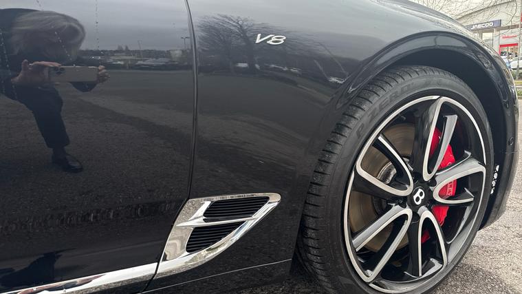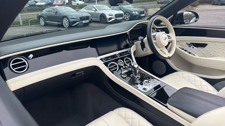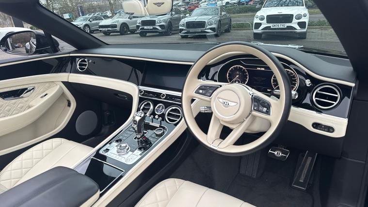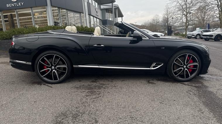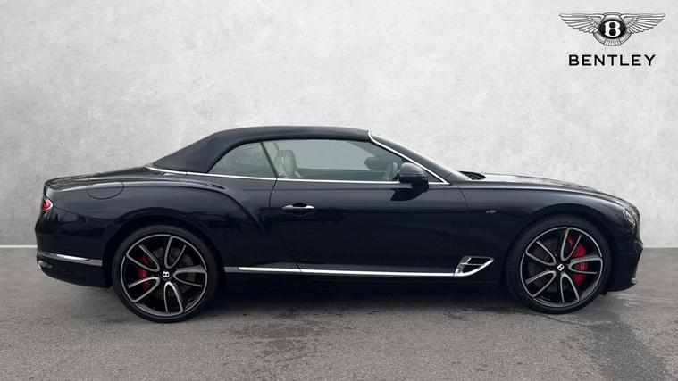Bentley Continental 4.0 V8 GTC finished in Onyx Black with a Linen Interior. Mulliner Driving Specification with Black and Polished Edge Wheel, Diamond Quilted Hide Seats, Keyless Entry, DVD Player, Blind Spot Assist and Exit Warning, Upper Decorative Inserts - Piano Black, Electrically Operated Door Mirrors with Heating.