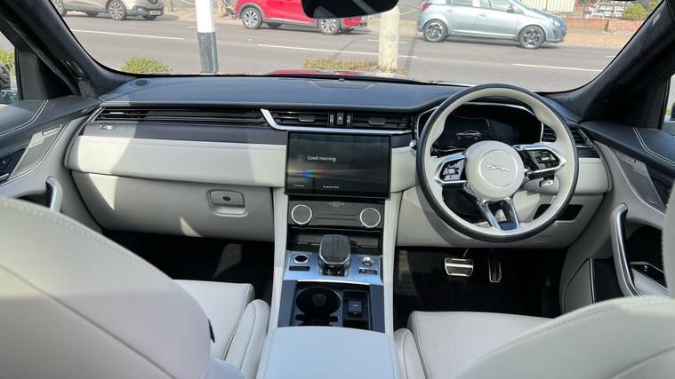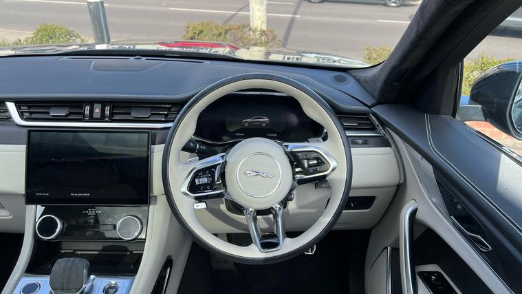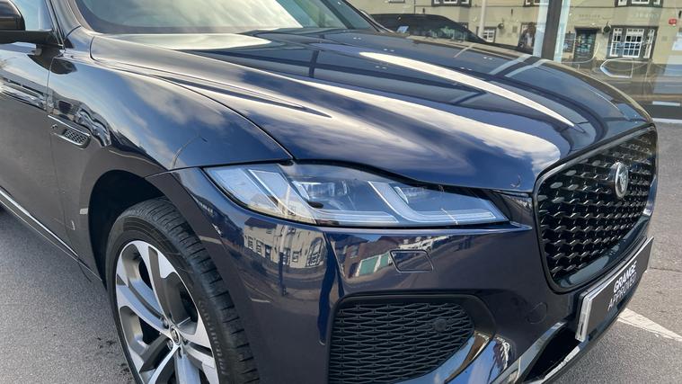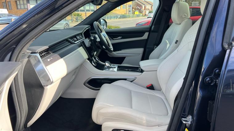 90th Anniversary model, purchased directly from Jaguar Cars Ltd and offered in a desirable colourway. *9.9 Representative APR available. Finished in Portofino Blue with Light Oyster perforated Windsor leather sport seats with Ebony/Light Oyster interior. Features include Fixed Panoramic roof, 21 Style 5104, Diamond Turned with Satin Dark Grey contrast40:20:40 folding rear seats with centre armrest, All Wheel Drive (AWD), Adaptive Cruise Control with Steering Assist, Driver Condition Monitor, Android Auto(TM), Apple CarPlay(R), Meridian(TM) Sound System, Auto High Beam Assist (AHBA), Blind Spot Assist, Two-zone climate control, Configurable Dynamics, Daylight running lamps, Driver and passenger seat memory, Front and Rear Parking Aid with Autobrake, 4-way lumbar adjust, Premium LED headlights with signature DRL, Ebony suedecloth headlining, Heated washer jets, Animated Directional Indicators, Interactive Driver Display, Auto-dimming interior rear view mirror, Keyless Entry, Lane Keep Assist + Upcoming Traffic Alert, Navigation Pack (Europe), Pivi Pro (Connected) (subscription required), Privacy glassRear Camera, Heated steering wheel, Heated, electric power fold memory door mirrors with approach lights and auto-dimming driver side, Illuminated metal treadplates with brand-name script. Call now for the full details and to check availability. *9.9 Representative APR available.