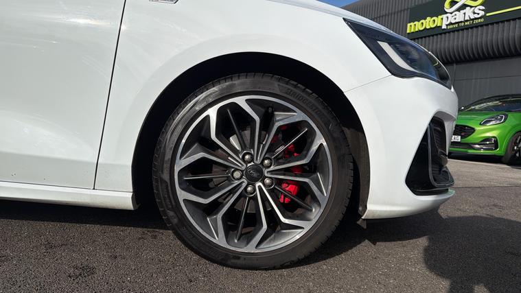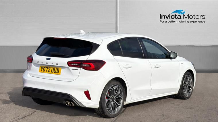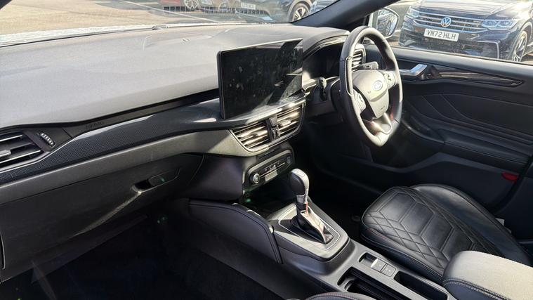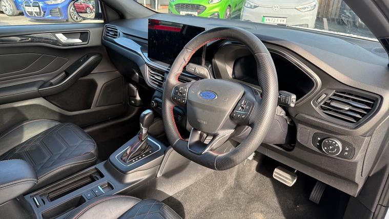 Features Include Sync 4 Navigation, Apple CarPlay And Android Auto, B+O Sound System, Front And Rear Parking Sensors With Reversing Camera And Heated Fromnt Seats And Stering Wheel. Presented in excellent condition, this Ford Focus ST-Line Vignale represents the perfect blend of sporty styling, premium comfort and modern hybrid efficiency. Combining the dynamic character of the ST-Line with the luxury touches of Ford's Vignale trim, this model delivers an engaging driving experience with a refined, high-quality interior. Powered by Ford's 1.0-litre EcoBoost mild-hybrid petrol engine, the Focus offers smooth and responsive performance while benefiting from improved efficiency thanks to the 48-volt hybrid system. The mild-hybrid technology recovers energy during braking and assists the engine under acceleration, helping deliver impressive fuel economy of around 50 mpg combined while maintaining lively performance. Paired with a smooth automatic transmission, the Focus provides effortless everyday driving whether navigating city traffic or cruising comfortably on the motorway. The engine produces up to 155PS, enabling confident acceleration.The ST-Line Vignale specification sits at the top of the Focus range, combining sporty exterior design with luxury interior finishes. Distinctive styling elements such as the ST-Line body kit, bold alloy wheels and rear spoiler give the car a dynamic road presence, while the cabin features premium upholstery, advanced technology and exceptional comfort.