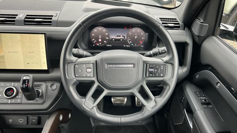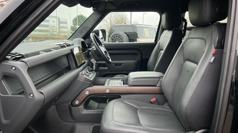 Our stunning Defender 90 X is presented in a high specification, with a range of brilliant premium features, complimented by the powerful 3.0l P400 powertrain. Our Defender 110 X is finished in Santorini Black matched with the Extended Black Exterior Pack and 22-inch Style 5098 wheels in Gloss Black, over Ebony Windsor leather interior, and comes equipped with some brilliant features and optional extras, including, 14-way Heated and Cooled front seats with Memory function, Heated rear seats, Three-zone Climate Control, Cabin Air Purification Plus, Meridian Surround Sound System, Privacy Glass, Sliding Panoramic Roof, Solar Attenuating Windscreen, Matrix LED Headlights, Keyless Entry, Adaptive Cruise Control, Lane Keep Assist, Blind Spot Assist, 360-degree Parking Aids, 3D Surround Camera, Head-up Display, ClearSight Interior Rear View Mirror, Apple CarPlay and Android Auto, DAB Radio, Wireless Device Charging, Front Centre Console Refrigerator Compartment, Cold Climate Pack, Towing Pack with Electrically Deployable Tow Bar, Secure Tracker Pro, and much more. Call today for more information.