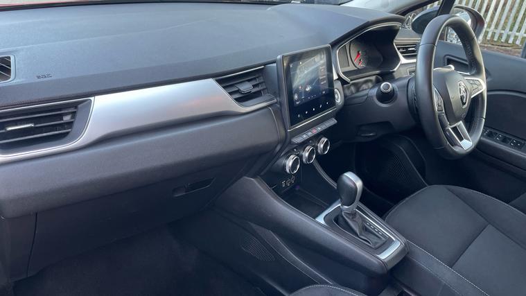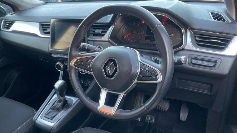 Features include Front and Rear Sensors, Keyless EntryGo, Cruise ControlSpeed Limiter, LED Lights wDusk and Rain Sensors, and Lane Assist. The compact SUV in the UK market from Renault is the Captur which is built alongside the excellent Nissan Juke. Being the 'Iconic' trim, our car comes equipped with plenty of equipment to ensure the best possible daily drive. This our example comes equipped with the 1.3 tCe Petrol Engine with 130ps which includes Stop and Start for improved town driving efficiency. A 'Cloth' upholstery is trimmed throughout the cabin and looks superb with Gloss Black Accents on the dashboard. A 9.3in 'Easy Link' media display takes pride of place on the dashboard and includes connections to DAB radio bands, Bluetooth and USB media connections, Navigation and even Apple Carplay and Android Auto.