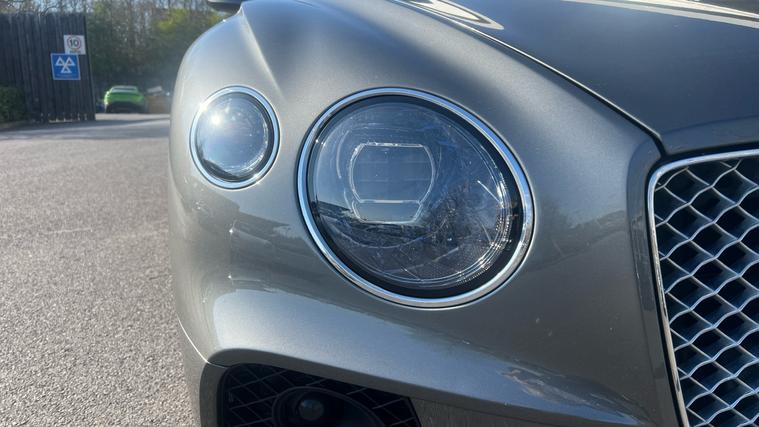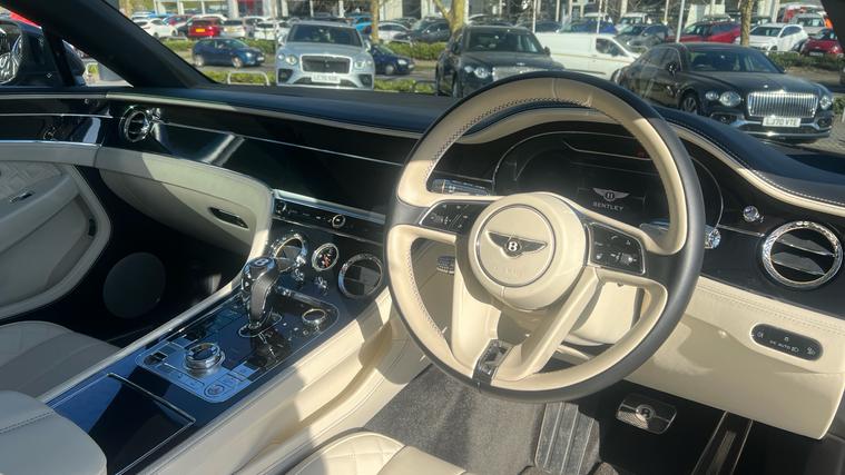 Certified Pre-Owned Bentley Continental GT W12 in Granite with Linen main interior with over 25, 000 pounds of costed options. Extensive specification includes optional extras such as Mulling Driving Specification with Alternative Wheels, City and Touring Specification, Heated Windshield, Heated Duo Tone 3 Spoke Hide Trimmed Steering Wheel, Deep Pile Overmats at Front, Bentley Rotating Display, Inductive Phone Charger, Diamond Knurling.