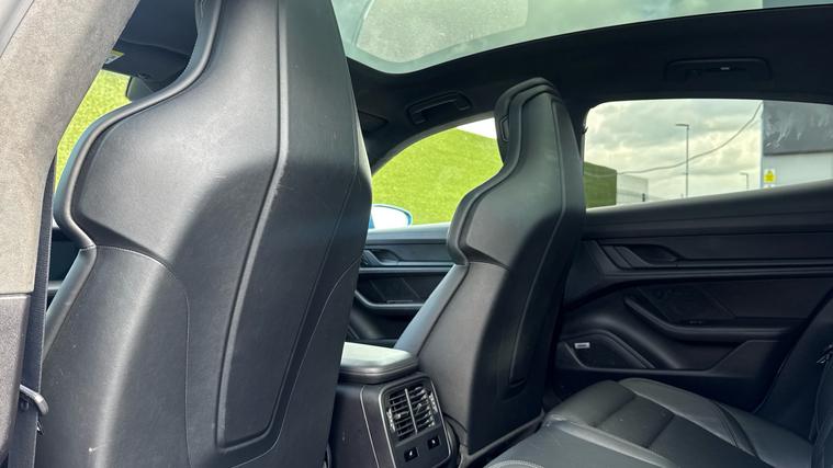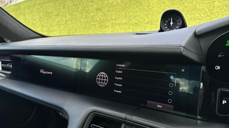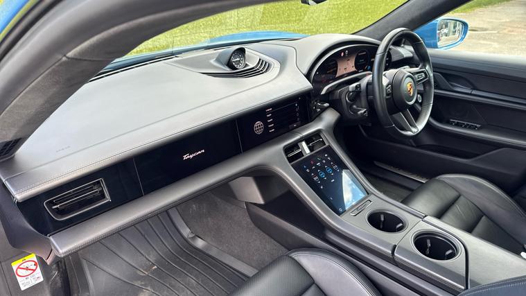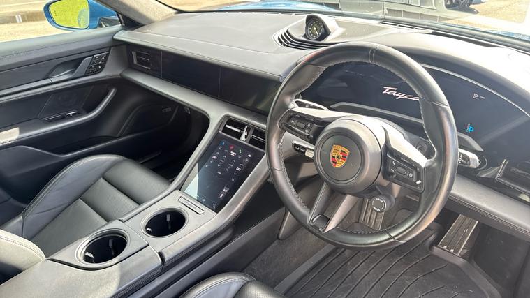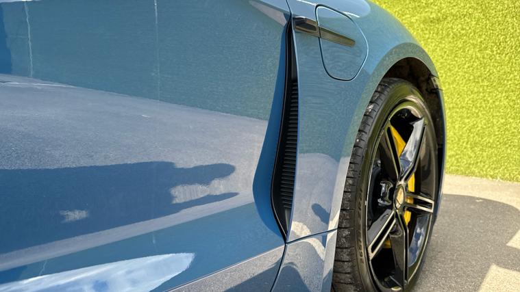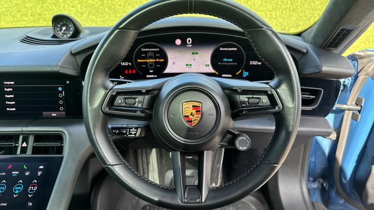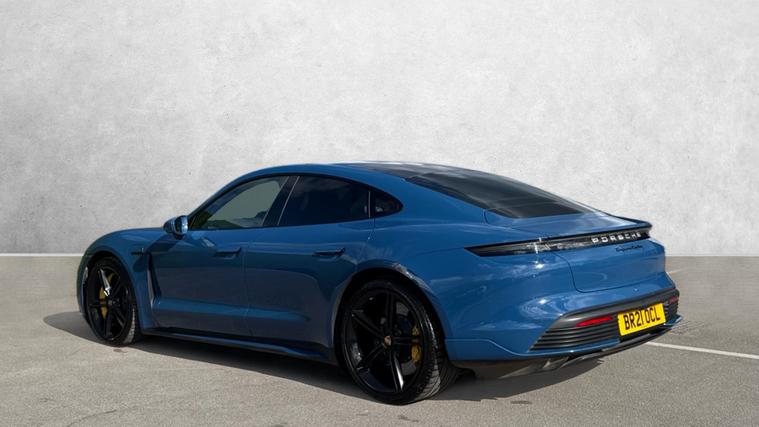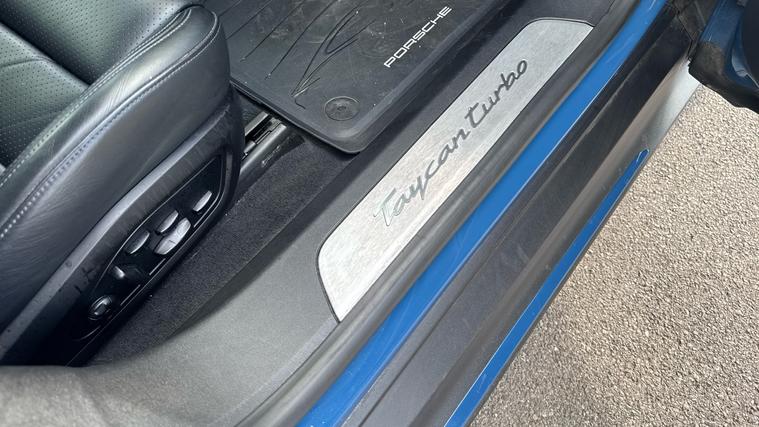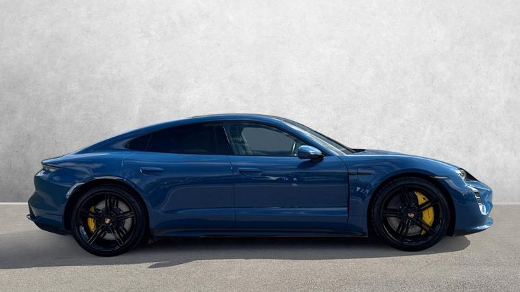Porschse Taycan with over 32, 000 pounds Of Factory Options . Porsche Taycan 500kW Turbo 93kWh 4dr Auto including Porsche Ceramic Composite Brake (PCCB), yellow calipers SportDesign package Special Paint Adaptive Sports Seats.