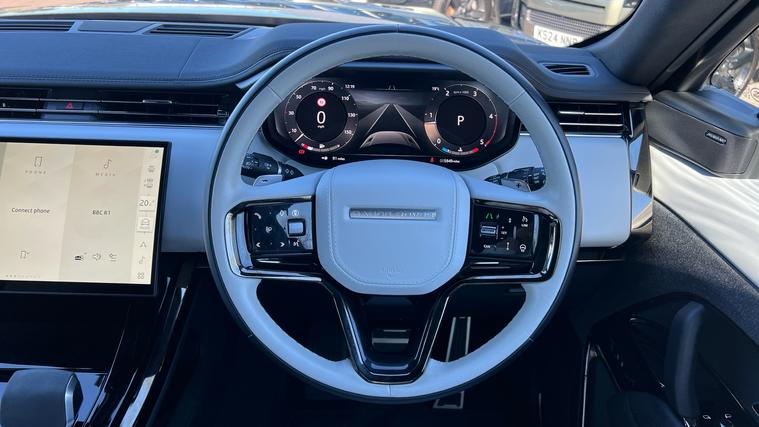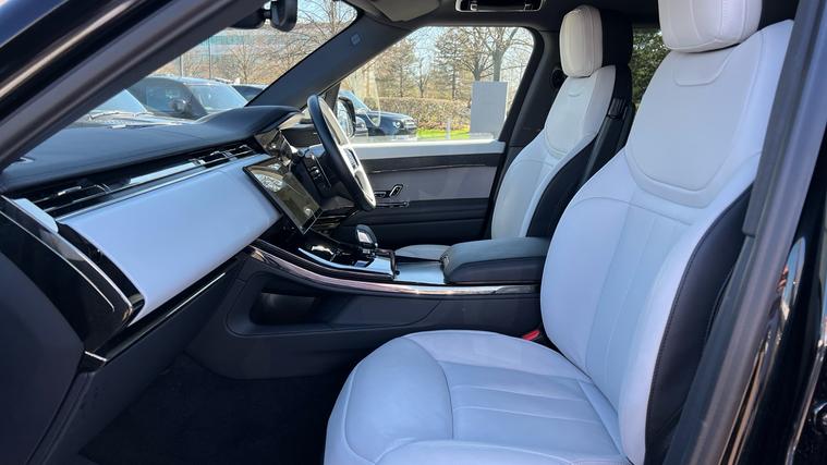 A stunning Range Rover Sport, presented in a superb specification with some fantastic optional extras equipped, complimenting incredible driving dynamics both on and off the road. Our Range Rover Sport Dynamic SE is finished in Santorini Black matched with the Black Exterior Pack and 22-inch Style 5127 wheels in Diamond Turned finish, over Light Cloud and Ebony split Windsor leather interior, and comes equipped with a great range of features and optional extras, including, 20-way Heated front seats with Memory function, Heated rear seats, Two-zone Climate Control, Meridian Sound System, Privacy Glass, Fixed Panoramic Roof, Pixel LED Headlights, Keyless Entry, Adaptive Cruise Control with Steering Assist, Lane Keep Assist, Blind Spot Assist, Front and Rear Parking Aids, 3D Surround Camera, Wireless Apple CarPlay and Android Auto, DAB Radio, Wireless Device Charging, Fixed Side Steps, and much more. Call today for more information.