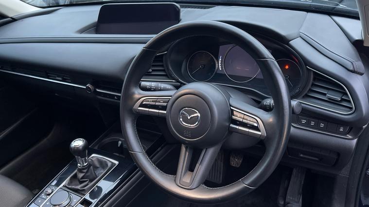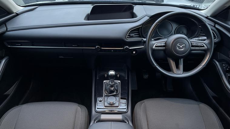 Specification of our Mazda CX-30 includes Mazda Navigation, Heated Front Seats, DAB Radio, Cruise Control with Speed Limiter and even Reverse Camera. Navigate your world effortlessly with the 8.8in TFT Colour Centre Display and integrated Apple CarPlay and Android Auto. Stay connected through integrated Bluetooth and guided by the Mazda Navigation System. Safety meets sophistication with Blind Spot Monitoring, Rear Cross Traffic Alert, and Mazda Radar Cruise Control. Enjoy precise control with the Multimedia Commander. Effortless parking becomes reality with front and rear sensors, and a reversing camera. Comfort awaits with three-stage heated front seats. Elevate your drive with Mazda.