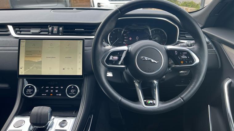 Desirable petrol F Pace R Dynamic Black model, offered in a desirable colourway. Call now for the full details and to check availability. *9.9 Representative APR available. Finished in Eiger Grey Metallic with Ebony Sports Leather Seats. Features and specification includes Navigation System, Parking Sensor with Rear Camera, 2 Zone Climate Control, 20 inch Style 1067 Gloss Black Alloy Wheels, Privacy Glass, Sliding Panoramic Roof, Adaptive Cruise Control, Amazon Alexa, Android Audio, Apple CarPlay, Blind Spot Assist, Directional Indicators, Daytime Running Lamps, DAB Radio, Exterior Black Pack, Wireless Charger, Multiway Adjustment to Front Seats with Lumbar Support, Premium LED Headlamps, 11.4 inch Infotainment Screen, Heated Front Windscreen, Heated Steering Wheel, Satin Chrome Paddleshifters, Privacy Glass, Rear Spoiler, Gloss Black Roof Rails, Reverese Traffic Detection, Voice Activated Controls, All Wheel Drive. Call now for the full details and to check availability. *9.9 Representative APR available.