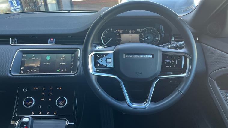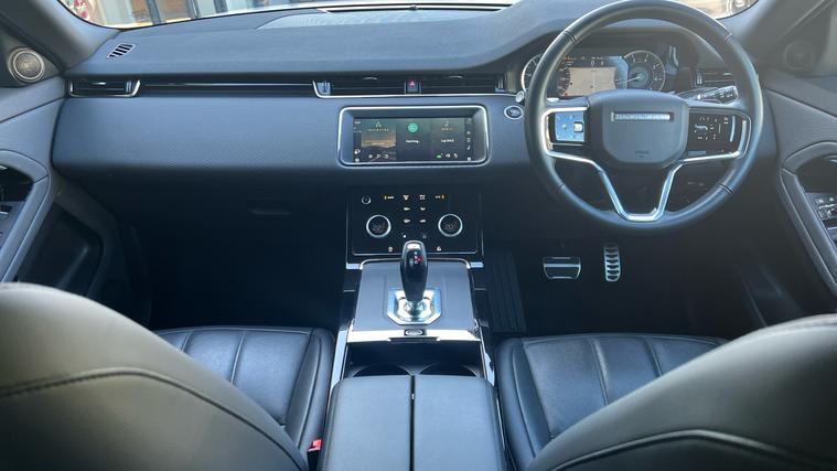 Excellent value Petrol Evoque, offered in the sporty R-Dynamic S trim level. *9.9 Representative APR available. Finished in Fuji White with Ebony Hide Sports Seats. Features include 2 Zone Air Conditioning, Adaptive Cruise Control, Apple CarPlay with Android Audio, LED Headlamps with Daytime Running Lights, DAB Radio, Wireless Charger System, Multiway Adjustable Front Seats with 4 Way Lumbar Support, Navigation System, Parking Sensor(s), Climate Control, 18 inch Style 5074 Gloss Black Alloy Wheels, Privacy Glass, Lane Keep Assist, 10 inch Infotainment System, Heated Front Windscreen, Heated Front Seats, Rain Sensing Wipers, All Wheel Drive, Voice Activated Controls, Satin Chrome Paddleshifters. Call now for the full details and to check availability. *9.9 Representative APR available.