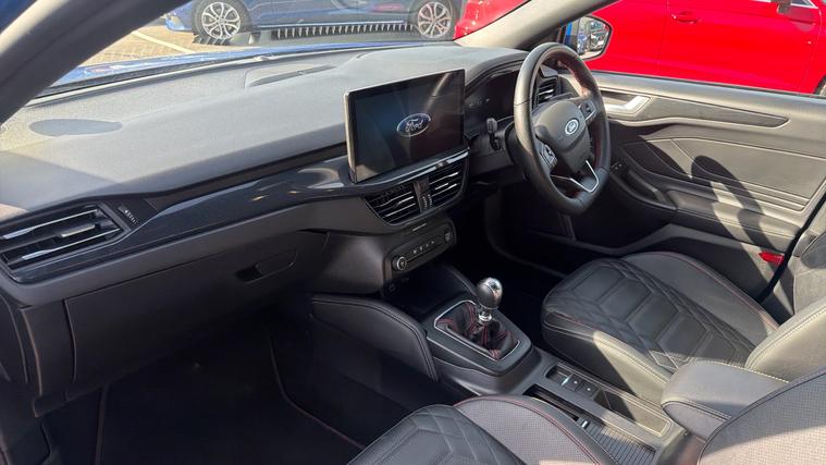 Features Include Digital Driver Display, B+O Premium Sound System, Front And Rear Parking Sensors With Reversing Camera And Apple Carplay And Android Auto Connectivity. Presented in excellent condition, this Ford Focus ST-Line Vignale is a superb example of a premium hatchback that blends sporty styling with refined luxury and everyday practicality. With its sleek, athletic design and distinctive ST-Line enhancements, paired with the upscale Vignale finish, this model offers a truly elevated driving experience. Powered by Ford's award-winning 1.0-litre EcoBoost turbocharged petrol engine, this Focus delivers smooth, responsive performance with impressive efficiencyperfectly suited to both city driving and longer journeys. Producing around 125PS, it offers a refined and balanced drive while maintaining strong fuel economy of close to 4550 mpg combined in real-world use. The ST-Line Vignale specification represents the very best of both worldscombining sporty design elements with premium comfort and cutting-edge technology. Inside, the cabin is beautifully finished with high-quality materials, offering a quiet, comfortable and tech-focused environment for driver and passengers alike. The latest Ford SYNC 4 infotainment system with a large 13.2-inch touchscreen takes centre stage, providing seamless connectivity and intuitive control, while the digital driver display ensures all key information is presented clearly.