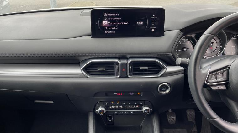 A stylish Mazda CX-5 Newground packed with great features. Experience the perfect blend of style and innovation with the Mazda CX-5 2.0 e-Skyactiv G MHEV Newground. Glide through your world on stunning 19-inch alloys and embrace comfort with heated seats. Navigate with confidence, thanks to Blind Spot Alert and Adaptive Cruise Control. Enjoy the perfect climate with Dual Zone Climate Control, and let Front and Rear Parking Sensors make parking a breeze. The Mazda CX-5 is designed for those who refuse to settle. Embrace adventure and precision engineering, and elevate every drive with a vehicle that's as dynamic as you are. Discover the Mazda difference today.