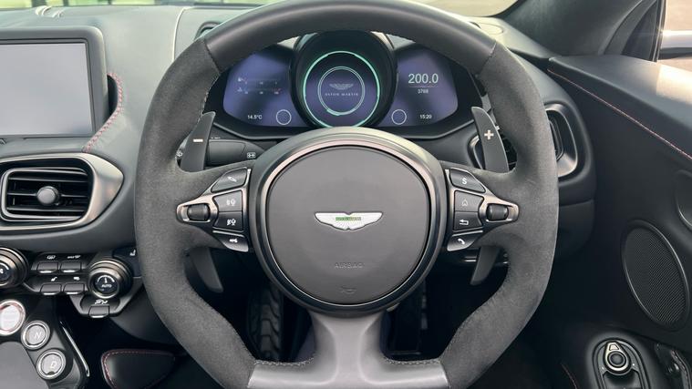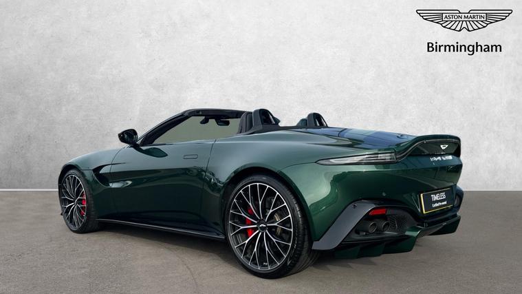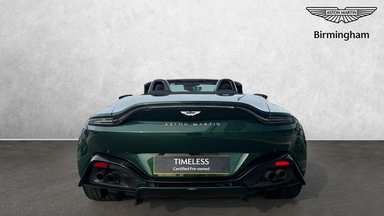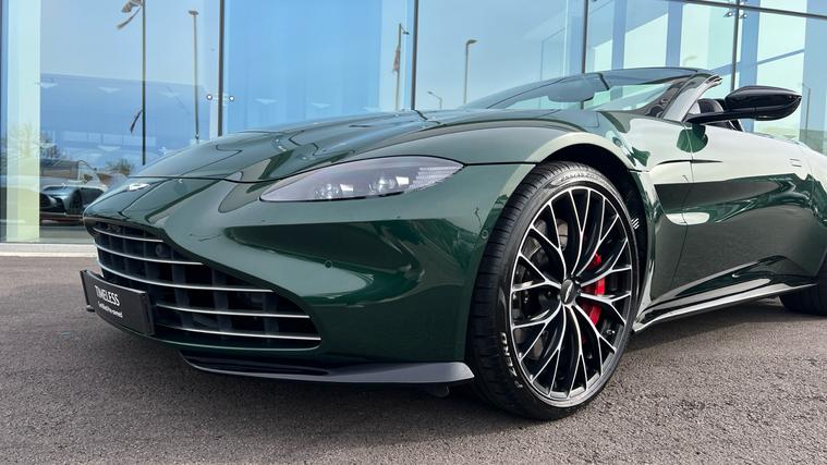Vantage Roadster is finished in Q Heritage Buckinghamshire green paint and has over 38k worth of factory options . Unleash the essence of luxury with the Aston Martin V8 Vantage Roadster ZF 8 Speed. Indulge in over 38k of exclusive enhancements, including the coveted Q Heritage special exterior paint and 21-inch satin black diamond-turned wheels. Experience precision and elegance with the front vaned grille and satin dark chrome jewellery pack. Revel in the comfort of sports plus seats, all meticulously fitted with contrast stitching, heated, and ventilated for your comfort. Designed with passion, this Roadster offers an unparalleled auditory journey with premium audio and distinctive smoked rear lights. Transform every drive into an unforgettable experience. Own the legend.