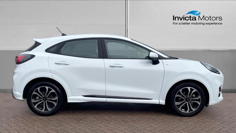 A sporty low mileage Puma ST-Line finished in Frozen White. Never lose your way again with the inbuilt Sat Nav, plus this Puma is fitted with Automatic Headlights, Rain Sensing Wipers, Cruise Control, Lane Keeping Aid, Rear Parking Sensors, Ford SYNC3 Bluetooth, One-Touch Electric Front Windows, a Heated Windscreen, Air Conditioning and a DAB Radio with USB in. Qualifies for Warranty4Life*.