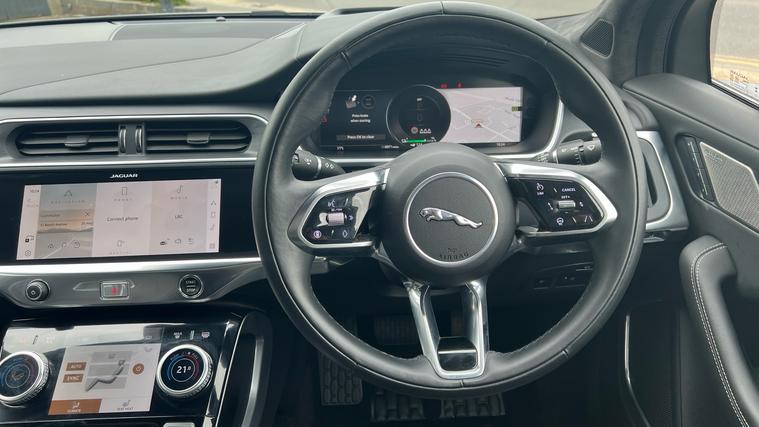 Superb all electric and top of the I Pace 400 Sport model. Call now for the full details and to check availability. *9.9 Representative APR available. Finished in Eiger Grey Metallic with Ebony Performance Sports Seats. Features and specification include 22 inch Style 5056 Gloss Black Alloy Wheels, Fixed Glass Panoramic Sunroof, 3D Surround Camera, Adaptive Cruise Control, All Wheel Drive, Android Auto, Apple CarPlay, Blind Spot Assist, Ambient Lighting, DAB Radio, Directional Indicators, Poered Tailgate, Exterior Black Pack, Heated and Cooled Multi Way Adjustable Front Seats with Lumbar Support, Suede Cloth Headlining, Head Up Display, Matrix LED Headlamps, Heated Windscreen, Heated Steering Wheel, 10 inch Infotainment Screen, Rear Spoiler, Electronic Air Suspension, Reverse Traffic Detection, Meridian 3D Surround Sound System, Privacy Glass, Voice Activated Controls. Call now for the full details and to check availability. *9.9 Representative APR available.