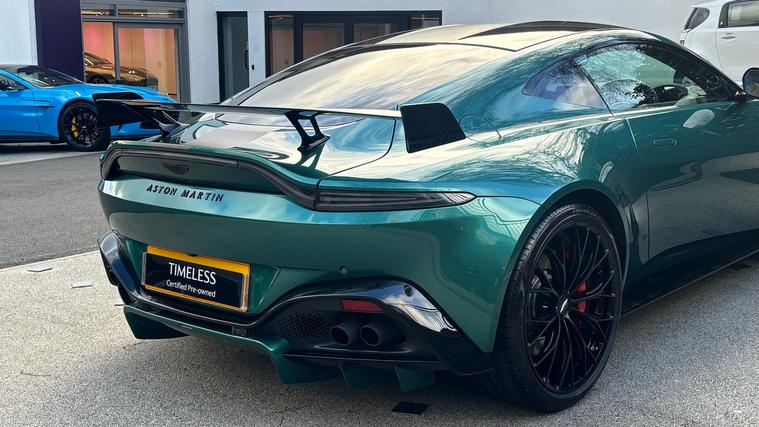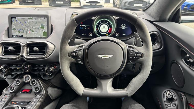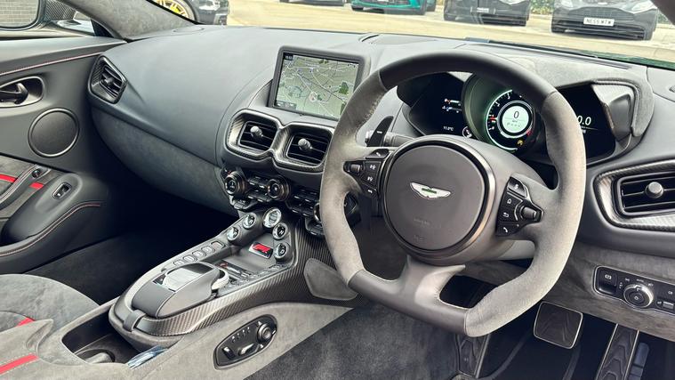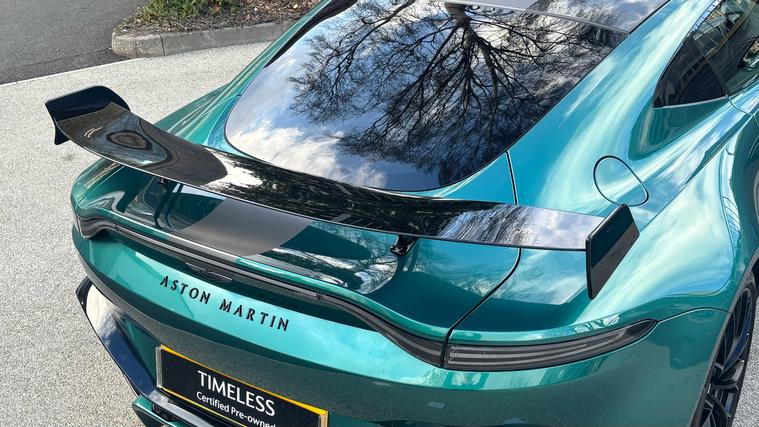 Low Mileage F1 Edition Vantage covered in Carbon Fibre and with Full Aston Martin Service History . Stunning low mileage Aston Martin Vantage F1 Edition finished in the best colour Aston Martin Racing Green and an Onyx Black and Phantom Grey interior trim. Fitted with some amazing features as standard including Twill Carbon Fibre Roof, Gloss Black Exterior Pack, 21inch Satin Black Alloy Wheels, Smoked Tail Lights, Twill Carbon Fibre Side Louvre, Twill Carbon Fibre Bonnet Vents, Sports Plus Seats, Black Vaned Front Grille and more. On top of of these, this particular example comes fitted with some amazing Optional Extras including Aston Martin Premium Audio, Twill Carbon Fibre Interior Package, Body Coloured Rear Diffuser and Blades, Privacy Glass and more. Full Aston Martin Service History and 12 Months Aston Martin Premium Warranty.