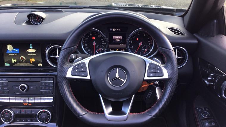Satellite Navigation, Electric Memory Seats, Led Intelligent Lighting System, Parktronic Parking System, Land Tracking Pack, Auto Climate Control Airscarf, Reversing Camera, Ambient Lighting. A standout lowmileage example of the Mercedes SLC 200 AMG Line, beautifully finished and equipped with an exceptional range of factory options. With just 17, 246 miles, this car has seen very light use and has been exceptionally well cared for throughout.This SLC features AMG Line styling and interior, a panoramic Varioroof, and the LED Intelligent Light System with Adaptive Highbeam Assist Plus. It comes with the Memory Package, offering electrically adjustable seats with memory, along with Airscarf necklevel heating and heated seats, making it perfect for topdown motoring in all seasons. Comfort is enhanced further by THERMOTRONIC automatic climate control. Technology and convenience highlights include Garmin Map Pilot navigation, PARKTRONIC with Parking Guidance, a reversing camera, the Lane Tracking Package, and the Mirror Package with autodimming and powerfolding mirrors. Smartphone integration and ambient lighting complete the highquality interior environment.Finished in metallic paint and complemented by highgloss black ash wood trim, this SLC combines style, comfort, and sophistication in a refined and sporty roadster package.With ultralow mileage, a rare highspecification, and superb overall condition, this is an ideal allseason convertible thanks to the Airscarf system and heated seats. A beautifully maintained SLC that's ready to enjoy.