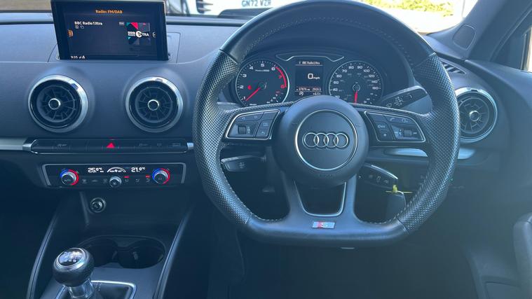 Great condition Audi A3 Petrol with documented service history in the desirable Black Edition spec. Call now for the full details and to check availability. *9.9 Representative APR available. Finished in Mythos black, metallic with Black Sequence cloth/leather with Rock grey stitching Seats. Spec includes 18 inch alloys, Parking sensors, bluetooth with Apple car play / Android auto, Tinted glass, LED headlights and built in Sat Nav. Call now for the full details and to check availability. *9.9 Representative APR available.