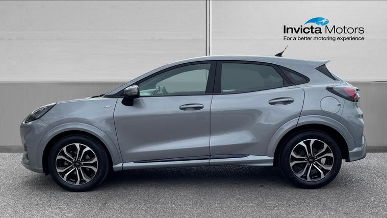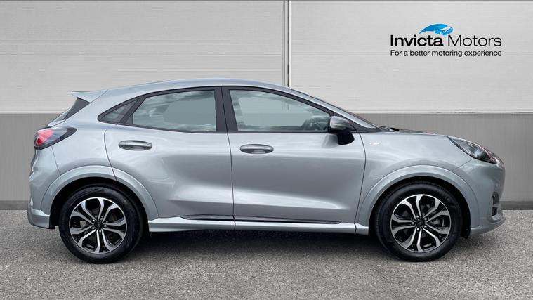 A stylish Puma ST-Line finished in the metallic Solar Silver. Never lose your way again with the inbuilt Sat Nav, plus this Puma is fitted with Heated Front Seats, Heated Steering Wheel, Automatic Headlights, Rain Sensing Wipers, Cruise Control, Lane Keeping Aid, Rear Parking Sensors, Ford SYNC3 Bluetooth, a Heated Windscreen, Air Conditioning and a DAB Radio with USB in. Qualifies for Warranty4Life*.
