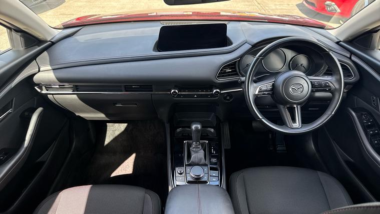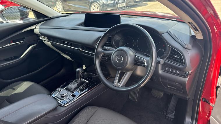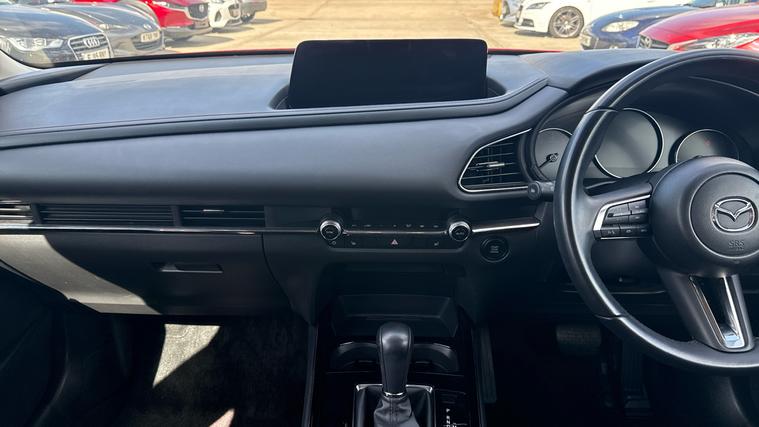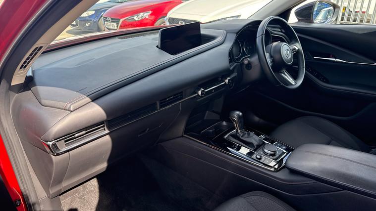 Specification of this our Mazda CX-30 includes Heated Front Seats, Wireless Charging, Folding Mirrors, Mazda Navigation, Reverse Camera and even Apple CarPlay/Android Auto. Seamlessly connect with the 10.25in Colour Centre Display featuring DAB Radio, 8 speakers, and Integrated Bluetooth. Enhance every journey with the Mazda Hybrid Navigation System. Stay charged with QI Wireless Charging, while Wireless Apple CarPlay and Wired Android Auto keep you connected. Safety is paramount with Blind Spot Monitoring, Rear Cross Traffic Alert, and a Reversing Camera. Enjoy adaptive cruise control and Traffic Sign Recognition for effortless cruising. Comfort meets innovation with 3-stage Heated Front Seats. Welcome to the future of driving.