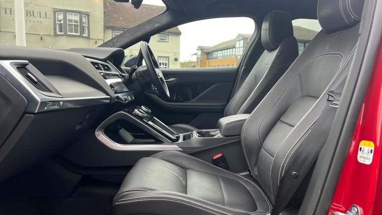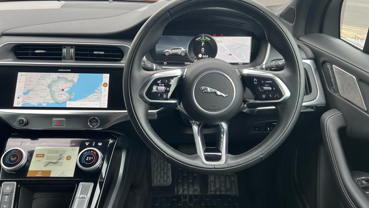 Beautiful and rare colour combination all electric I Pace, offered in the high HSE specification. Finished in Firenze Red Metallic with Ebony Hide Sports Seats. Fixed Panoramic Sunroof, Head Up Display, 20 inch Style 5068 Diamond Turned Alloy Wheels, Adaptive Cruise Control, Android Auto, Apple CarPlay, Blind Spot Assist, Cabin Lighting, Daytime Running Lights, DAB Audio, Directional Indicators, Black Exterior Pack, Powered Tailgate, Multiway Adjustable Front Seats with 4 Way Lumbar Support, Matrix LED Headlamps, Keyless Entry, 10 Inch Infotainment Touchscreen, Heated Windscreen Heated Steering Wheel, Suedecloth Headlining, Meridian Sound System, Navigation System, Privacy Glass, Reverse Camera, Voice Activated Controls, Powered Tailgate.