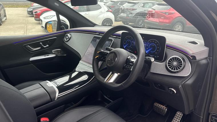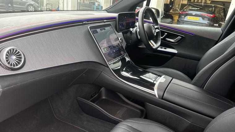 Our Mercedes-Benz EQE AMG Line Night Ed Premium is packed with all the luxury such as Panoramic Sunroof, Heated Front Seats, 360-Degree Camera and Burmester 3D Sounds. Introducing the Mercedes-Benz EQE 350 AMG Line Night Edition Premium, where innovation meets unrivaled luxury. Experience the future with a seamless blend of technology and elegance. The EQE 350 boasts a 5G Communications Module, MBUX Navigation Premium with live traffic updates, and an immersive Burmester 3D Surround Sound System, making each journey extraordinary. Navigate with precision using the 360-degree camera and PARKTRONIC. Enjoy peace of mind with Blind Spot Assist. Stay connected effortlessly with Smartphone Integration and wireless charging. Glide on 22 alloy wheels while the panoramic sunroof bathes the Widescreen Cockpit in natural light. This is more than a car; it's a Mercedes-Benz.