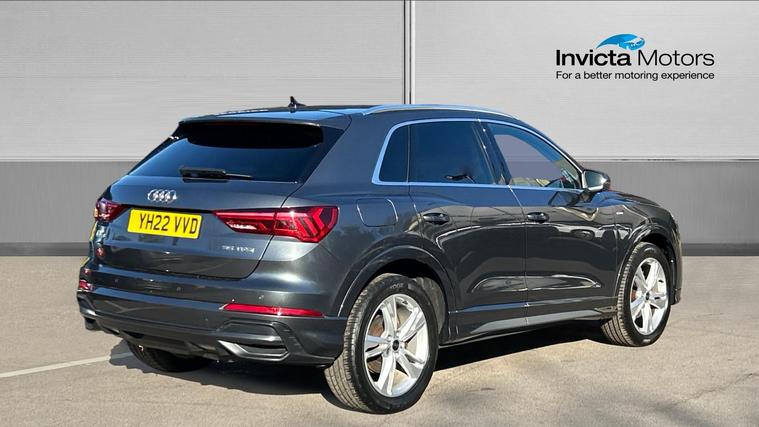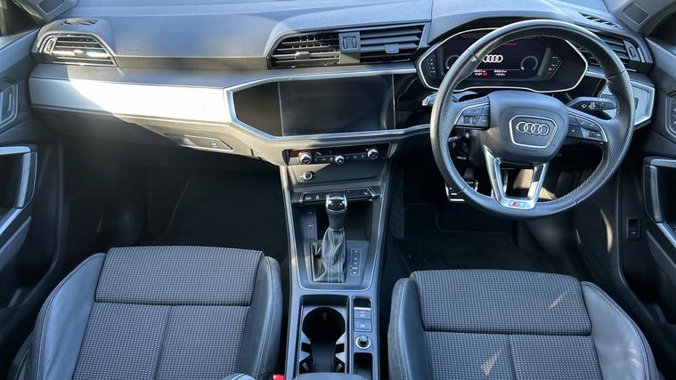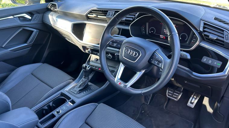 Sporty S Line Q3 with great spec, smooth automatic drive, and excellent condition throughout. Ready to drive away. This 2022 Audi Q3 35 TFSI S Line S Tronic combines sporty styling with premium technology, featuring Audi Virtual Cockpit, a 10.1-inch touchscreen infotainment system with navigation, Apple CarPlay/Android Auto, and Bluetooth connectivity. Powered by a responsive 1.5 TFSI petrol engine with smooth S Tronic automatic transmission, it delivers refined performance and efficiency. With S Line styling, LED headlights, dual-zone climate control, power tailgate, and advanced driver assistance systems including lane departure warning and cruise control, this SUV offers comfort, practicality, and a dynamic driving experience.