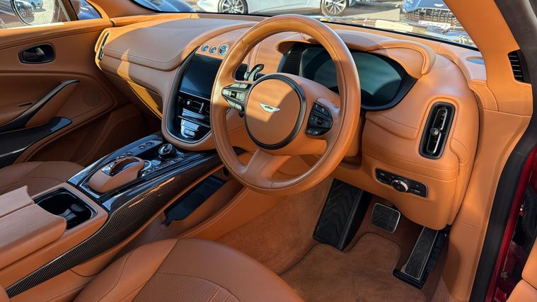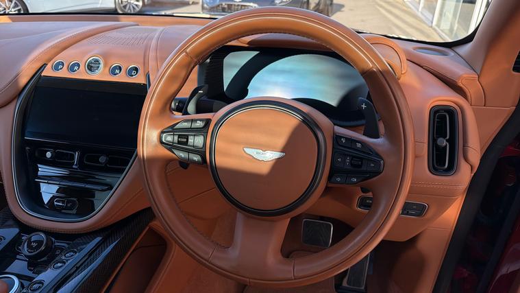 Over 55K of Optional Extras including Carbon Fibre all over the car and a stunning colour combination of Q Supernova Red and Oxford Tan. Full Aston Martin Service History and 12 Months Warranty. Over 55K of Optional Extras including all the Carbon Fibre imaginable on this 2024 Aston Martin DBX707. Finished in the elegant and rare Supernova Red with a beautiful contrasting Oxford Tan Interior Trim. Fitted with a host of extras including Twill Carbon Fibre Exterior Upper and Lower Packs, 23inch Textured Black Alloy Wheels, Twill Carbon Fibre Trim Inlay, Electric Deployable Tow Bar, Privacy Glass, Gloss Black Front Grille, Black Aston Martin Wings and Script Exterior Badging, Cooled Front and Rear Seats and Red Brake Calipers. Full Aston Martin Service History and remainder of Manufacturers Warranty until 2027 and 3 Year Service Plan. Great Part Exchange and Finance offers available .