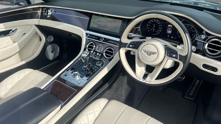 Continental GTC 6.0 W12 finished in Hallmark Grey with a Mulliner Hide Interior of Linen and Beluga. Mulliner Driving Specification with Black and Polished Edge Alloy Wheel, Centenary Specification, Touring Specification, Front Seat Comfort Specification, Bright Chromed Lower Bumper Matrix Style Grille, Heated, Duo-Tone, 3 Spoke, Indented Hide Trimmed Steering Wheel, Deep Pile Overmats - Front, Naim for Bentley, Bentley Rotating Display, Digital TV Tuner (in Addition to Digital Radio), Inductive Phone Charger, Remote Controlled Garage Door Opener, Valet Key, Fresh Air Intake and Air Ionizer, City Specification, Diamond Knurling, Mood Lighting Specification.