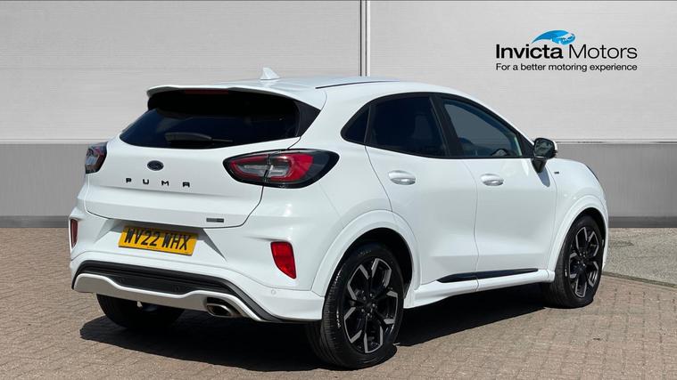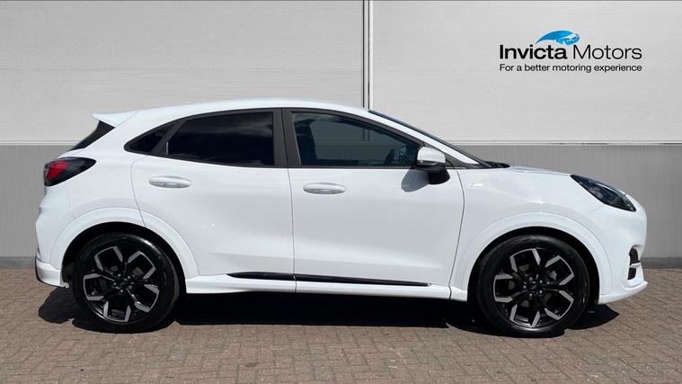 A sporty Puma ST-Line X finished in Frozen White with 18 Inch Alloys. Never lose your way again with the inbuilt Sat Nav, plus this Puma is fitted with Automatic Headlights, Rain Sensing Wipers, Cruise Control, Lane Keeping Aid, Rear Parking Sensors, Ford SYNC3 Bluetooth, Wireless Charging Pad, a Heated Windscreen, Air Conditioning and a DAB Radio with USB in. Qualifies for Warranty4Life*.