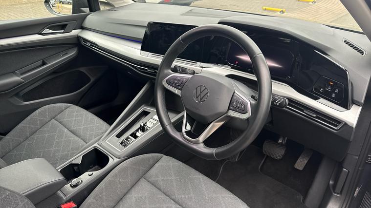 Our VW Golf comes fitted with App-Connect, Discover Navigation, Digital Cockpit Pro, Wireless Smartphone Charger, Adaptive Cruise Control and Front/Rear Parking Sensors. Experience the perfect blend of innovation and style with the Volkswagen Golf 1.5 eTSI 150 Life 5dr DSG. Connect seamlessly with App-Connect and Discover Navigation for effortless journeys. Touch-sensitive shortcut menus ensure intuitive control, while We Connect Plus Preparation keeps you ahead. Stay charged with a wireless smartphone charger and always alert with fatigue detection. Encounter the road anew with Dynamic Road Sign Display and park like a pro with front and rear sensors. Adaptive Cruise Control and electronic climate control offer serene driving. Ambient lighting sets a sophisticated mood. With the Digital Cockpit Pro and keyless start-stop, every drive becomes extraordinary.
