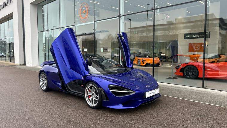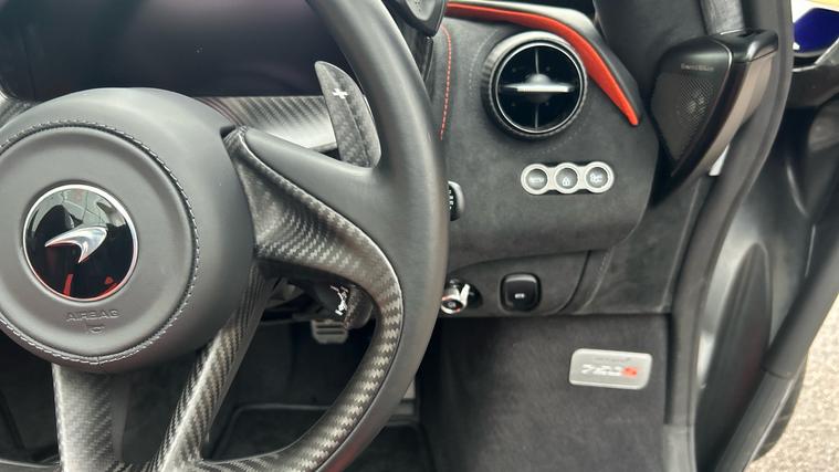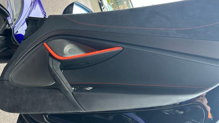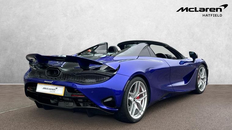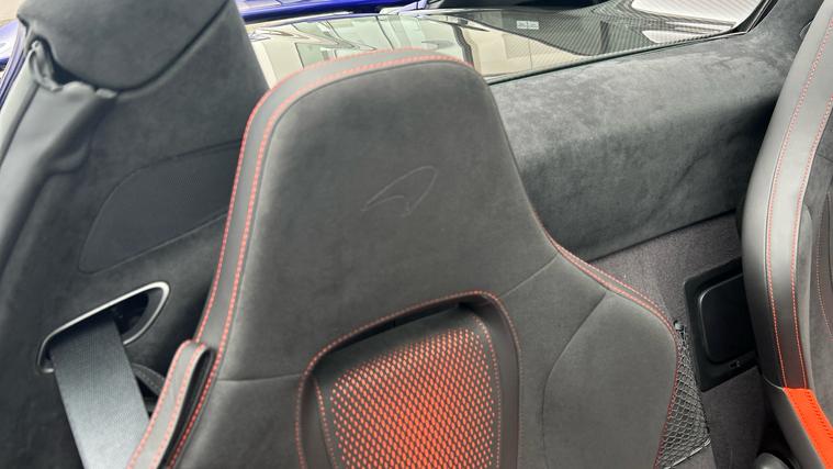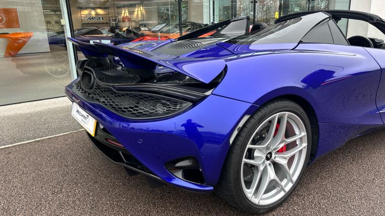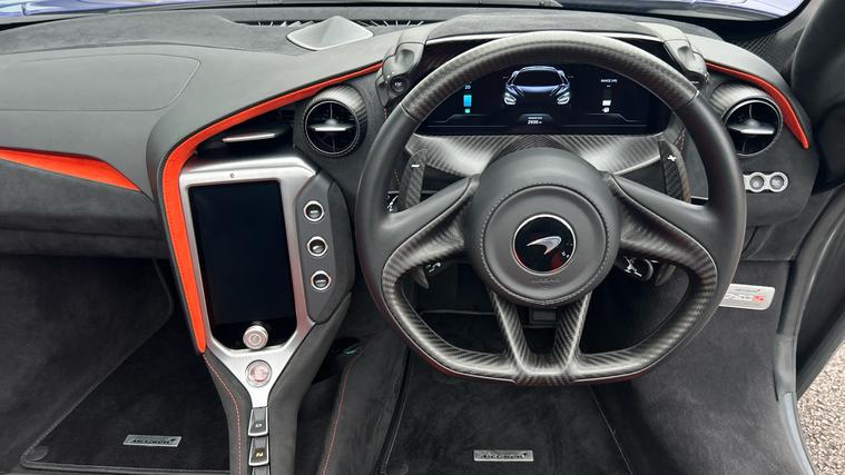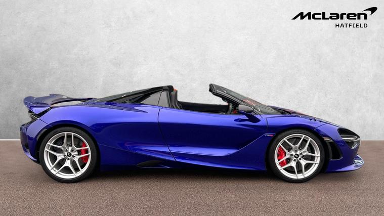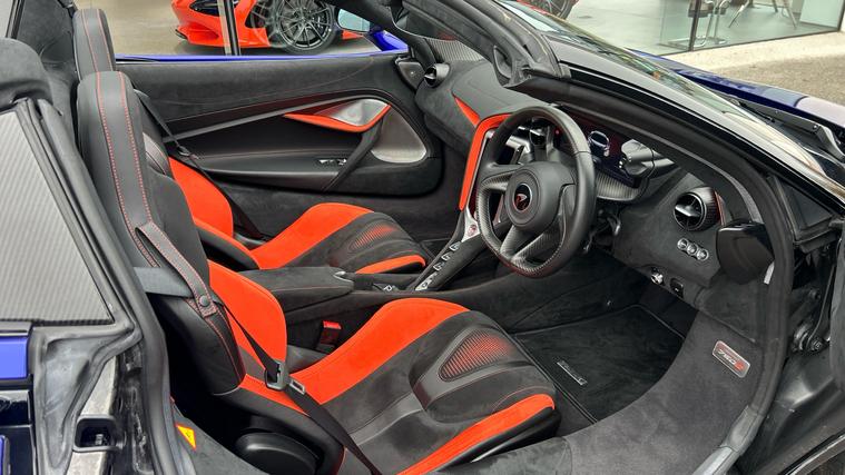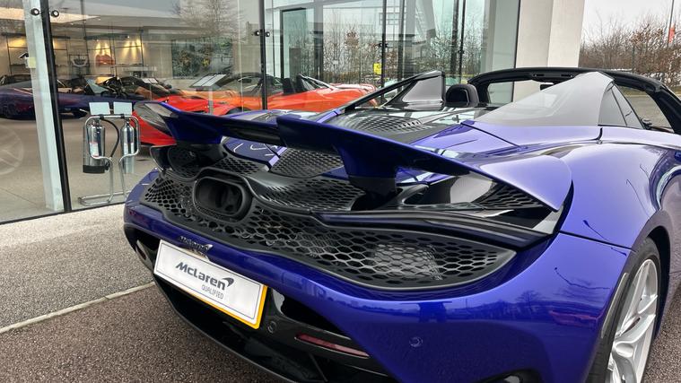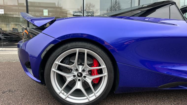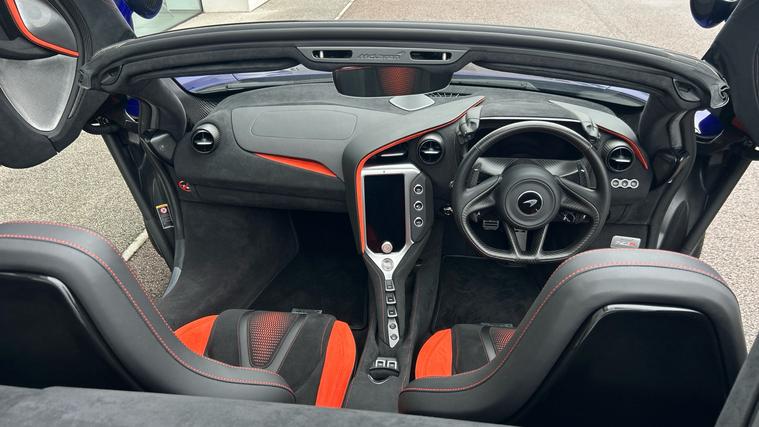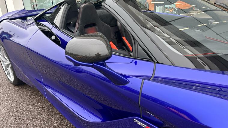 This Stunning colour paired with a huge specification of carbon fibre. Finished in stunning Elite Tanzanite Blue, this 750S Spider features an extensive Carbon Fibre exterior specification including Visual Carbon Fibre Rear Bumper, Carbon Fibre Tonneau, Front Fenders and Louvres, Hood Air Intakes, Door Mirrors, B-Pillars, Rear Air Intakes and Gloss Carbon Fibre exterior detailing. Gloss Black Roof, Rear Aero Bridge and Front Splitter complement the aggressive design, alongside Stealth Exhaust Finishers and Sports Exhaust.Optioned with the Carbon Fibre Exterior Details Pack and Upper Structure Carbon Fibre Pack, this example sits on Silver Strike 10 Spoke Super-Lightweight Wheels with Red Calipers, Front and Rear Parking Sensors with Rear Camera, 360 Park Assist, Vehicle Lift, Sound Comfort Windscreen and full security package including Tracking System and Volumetric Alarm complete the exterior specification.Inside, the Performance Interior in Carbon Black with Ember Orange provides a purposeful yet luxurious cabin. Comfort Seats with electric adjustment, heating and memory are paired with Carbon Fibre Interior Pack, Carbon Fibre Steering Wheel with Leather Grips, Carbon Fibre Paddles and Clasp, and Bowers + Wilkins 12-Speaker Audio.A highly specified, beautifully configured 750S Spider combining serious performance with standout visual presence.