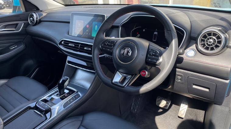 HS also looks great in Metalic Blue with Black leather interior, . Ignite your journey with the MG HS 1.5 T-GDI Trophy. Crafted for perfection, envelop yourself in luxurious leather seats promising unmatched comfort. Every drive is an adventure with its dynamic design and meticulous detail, turning heads while offering exceptional performance. Whether navigating city streets or cruising the open road, experience seamless transitions with the advanced DCT, offering unparalleled control and responsiveness. Sophistication meets innovation in this elegantly bold masterpiece. Elevate your driving experience, and discover what it means to truly stand out. The MG HS Trophy is not just a car, but your ticket to explore without limits.