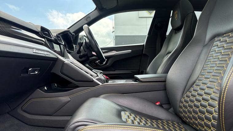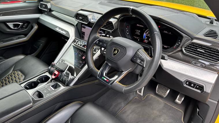 Lamborghini 4.0 V8 Full Lamborghini Service history with only 2 owners from new. Unleash the extraordinary with the Lamborghini Urus 4.0T FSI V8, now in a stunning Giallo Auge. Experience unrivaled performance wrapped in unparalleled elegance, as luxury meets power. Seated in exquisite leather adorned with Q-citura, command your journey with the multi-function steering wheel featuring perforated leather inserts. Glide effortlessly on heated Taigete 23 inch black alloy wheels. Bask in the grandeur through the panoramic roof, cocooned in a 4-seat configuration with full carbon interior. The Urus transcends boundaries, offering a symphony of sophistication and ferocity. Elevate your drive to a realm where opulence and thunderous capability collide. Your adventure awaits.