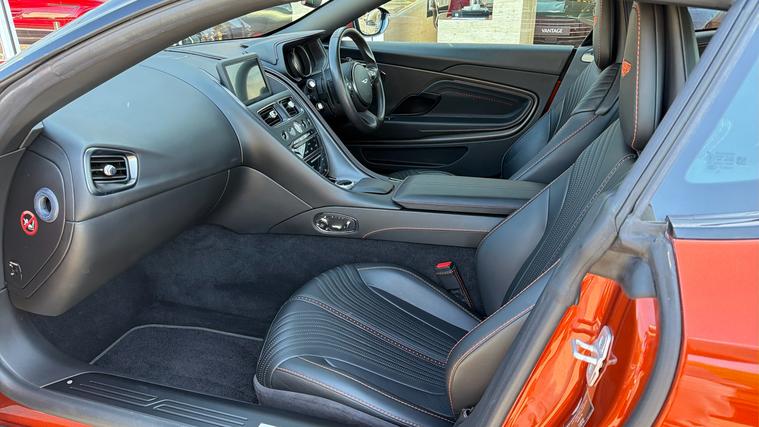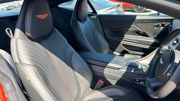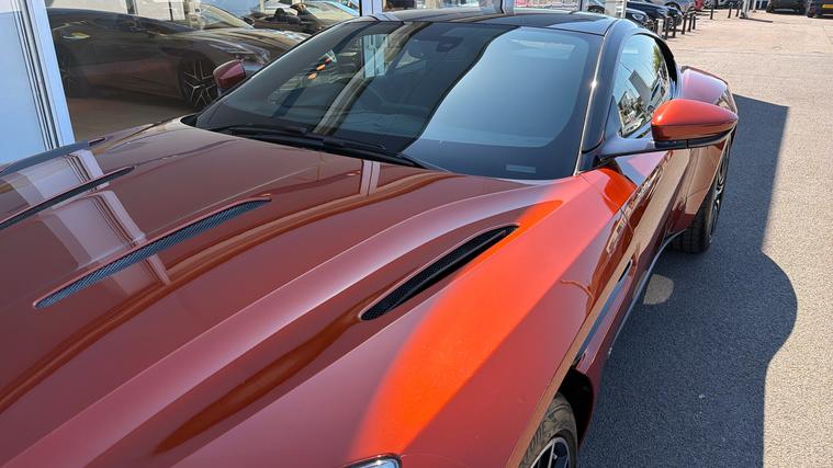 Super rare Cinnibar Orange DB11 5.2 V12 with the AMR Power Upgrade and a stunning specification. Full Aston Martin Service History and 12 months Aston Martin Warranty. Super rare Cinnibar Orange DB11 5.2 V12 with the AMR Power Upgrade and a stunning specification. Fitted with over 26K of Optional Extras including Exterior Black Pack, Internal Shadow Pack, Satin Cuprum Carbon Fibre Trim Inlay, Gloss Black Painted Roof, Aston Martin Premium Audio, Body Coloured Door Handles, Nexus Quilting, Brogue Detailing, Perforated Leather Headlining and much more. Full Aston Martin Service History and 12 Months Aston Martin Premium Warranty.